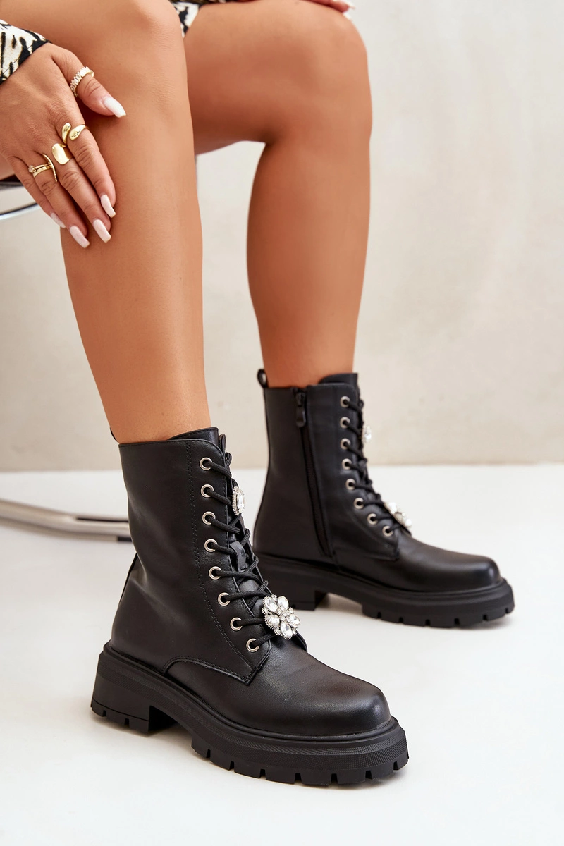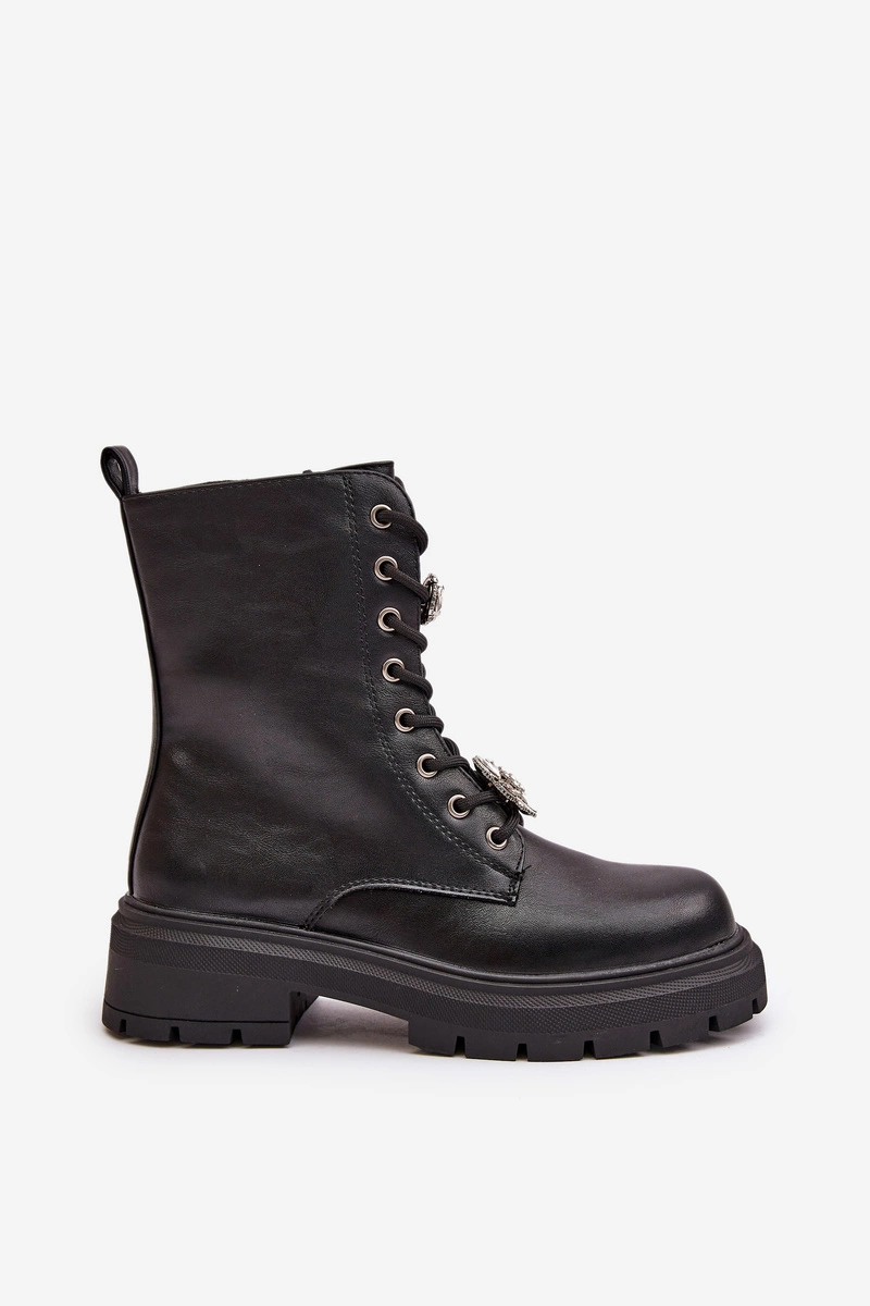 Botki Workery Damskie Eko Skórzane Z Przypinkami Czarne Kristines