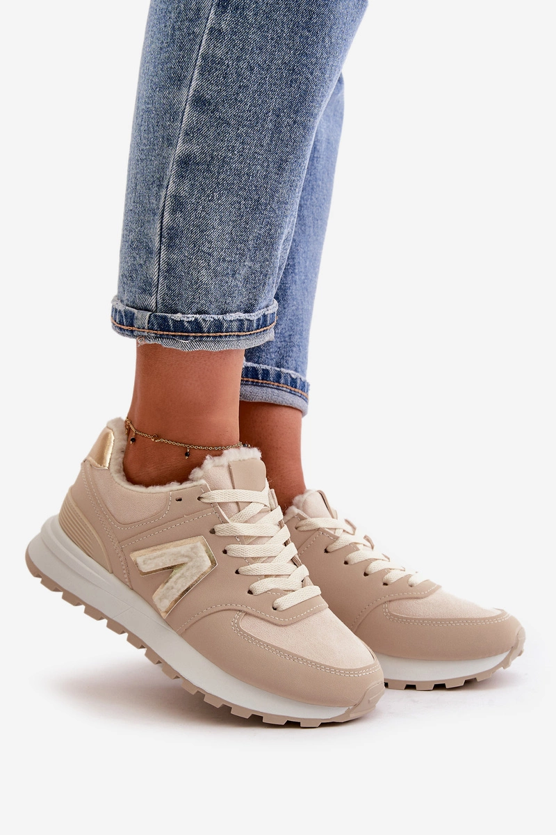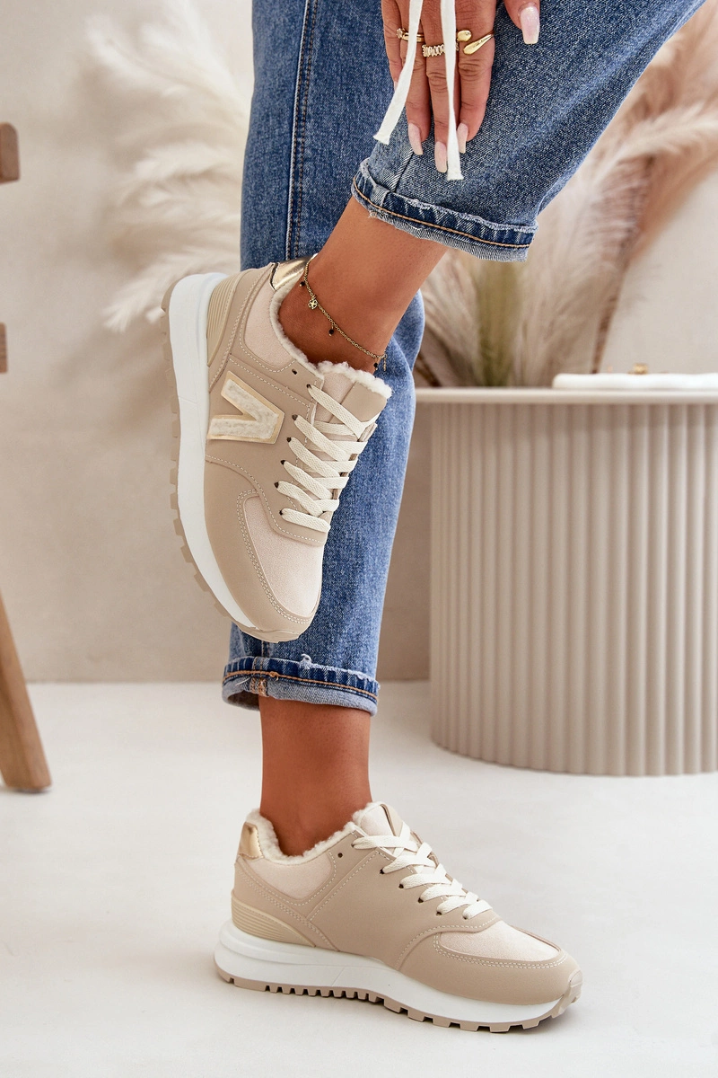 Sneakersy Buty Sportowe Damskie Ocieplane Kożuchem Beżowe Ciamara