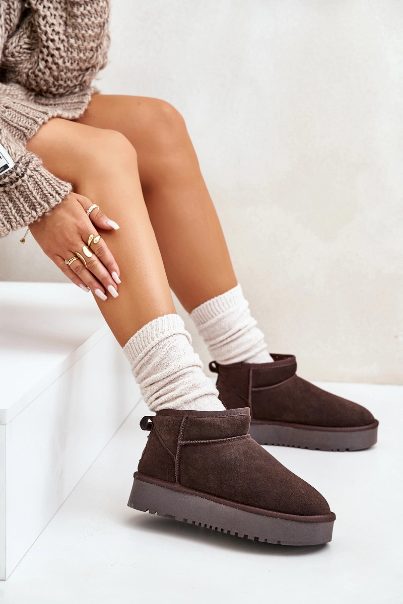 Niezwykle modne śniegowce idealnie sprawdzą się podczas mroźnych dni. Wykonane z naturalnego zamszu. Wnętrze butów zostało ocieplone grubym futerkiem. Osadzone na platformie, która skutecznie odizoluje od zimnego podłoża. Ten model koniecznie powinien znaleźć się w Twojej szafie! Przy wyborze rozmiaru prosimy sugerować się tabelą rozmiarów.