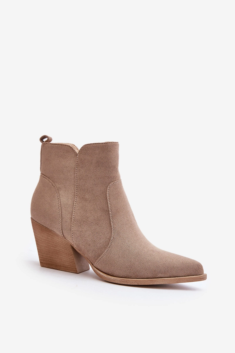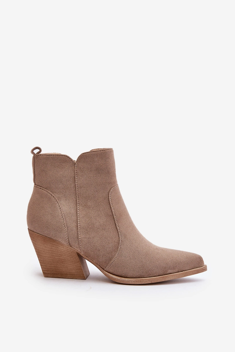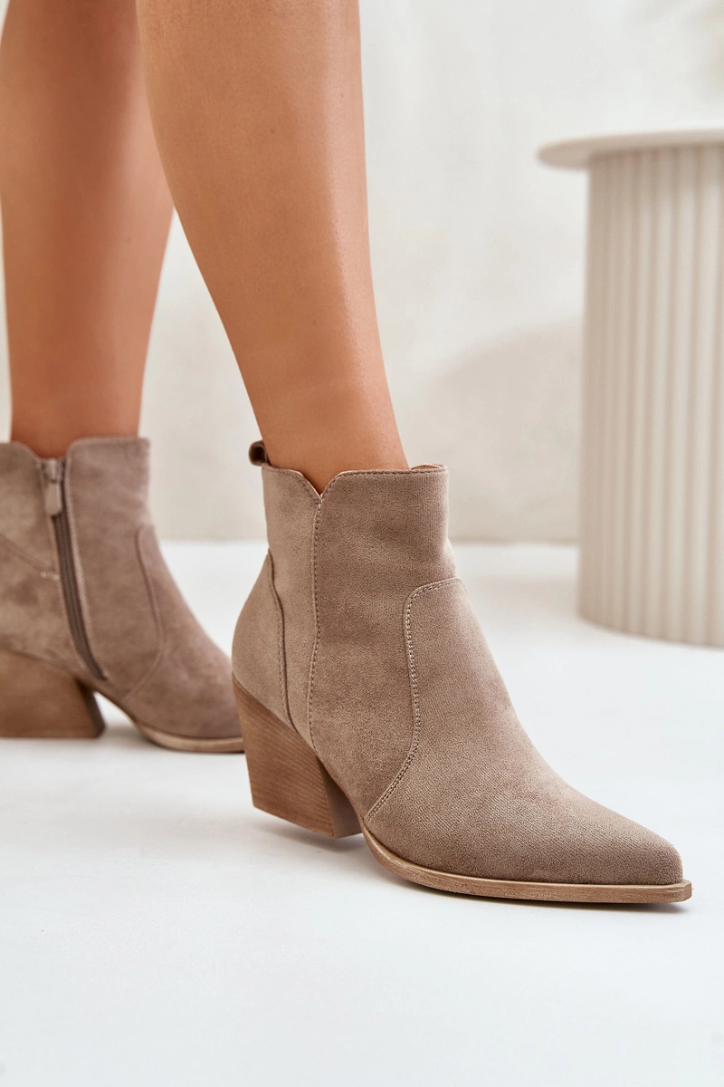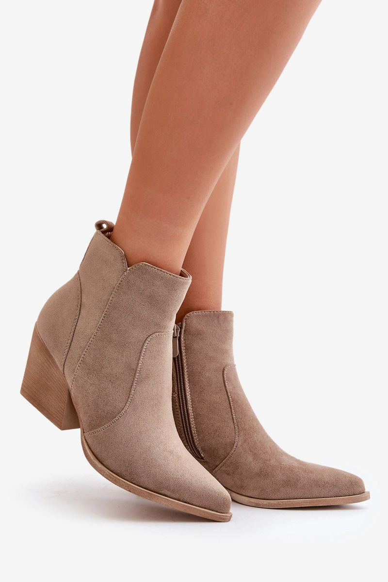 Ocieplane Botki Kowbojki Eko Zamszowe Na Zamek Ciemnobeżowe Virtris