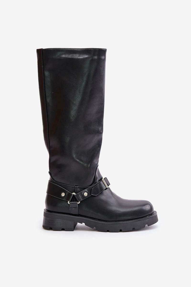 Ocieplane Kozaki Damskie Na Zamek Eko Skórzane Czarne Tialethe
