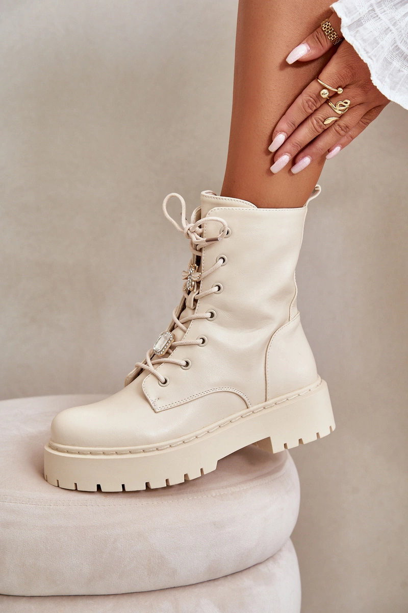 Ocieplane Botki Workery Damskie Z Przypinkami Beżowe Avorira