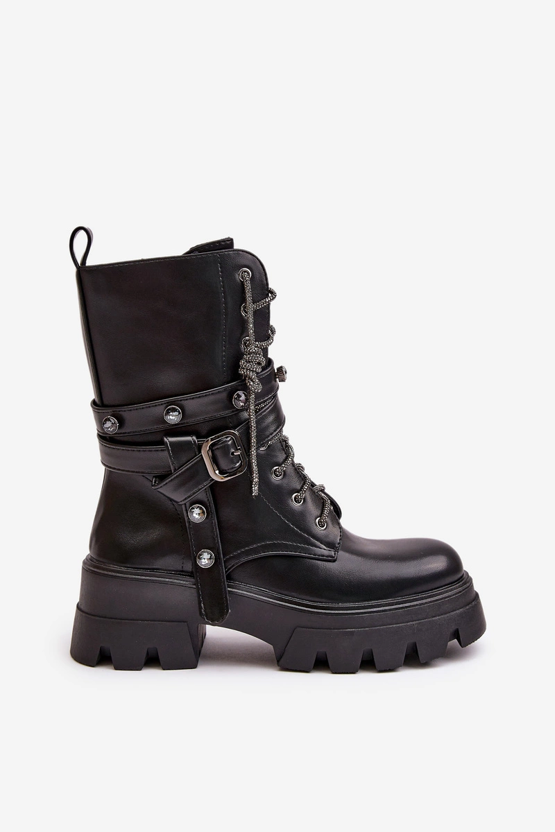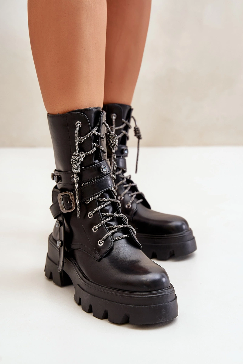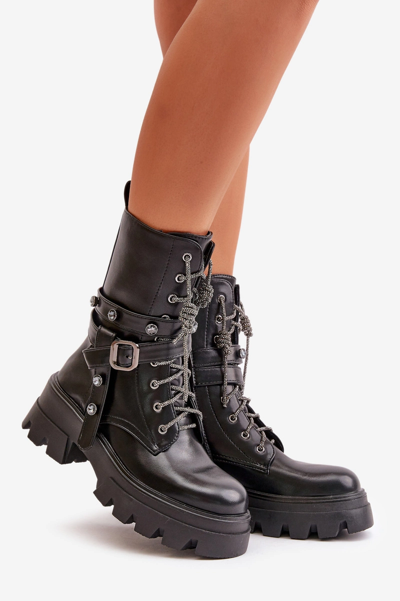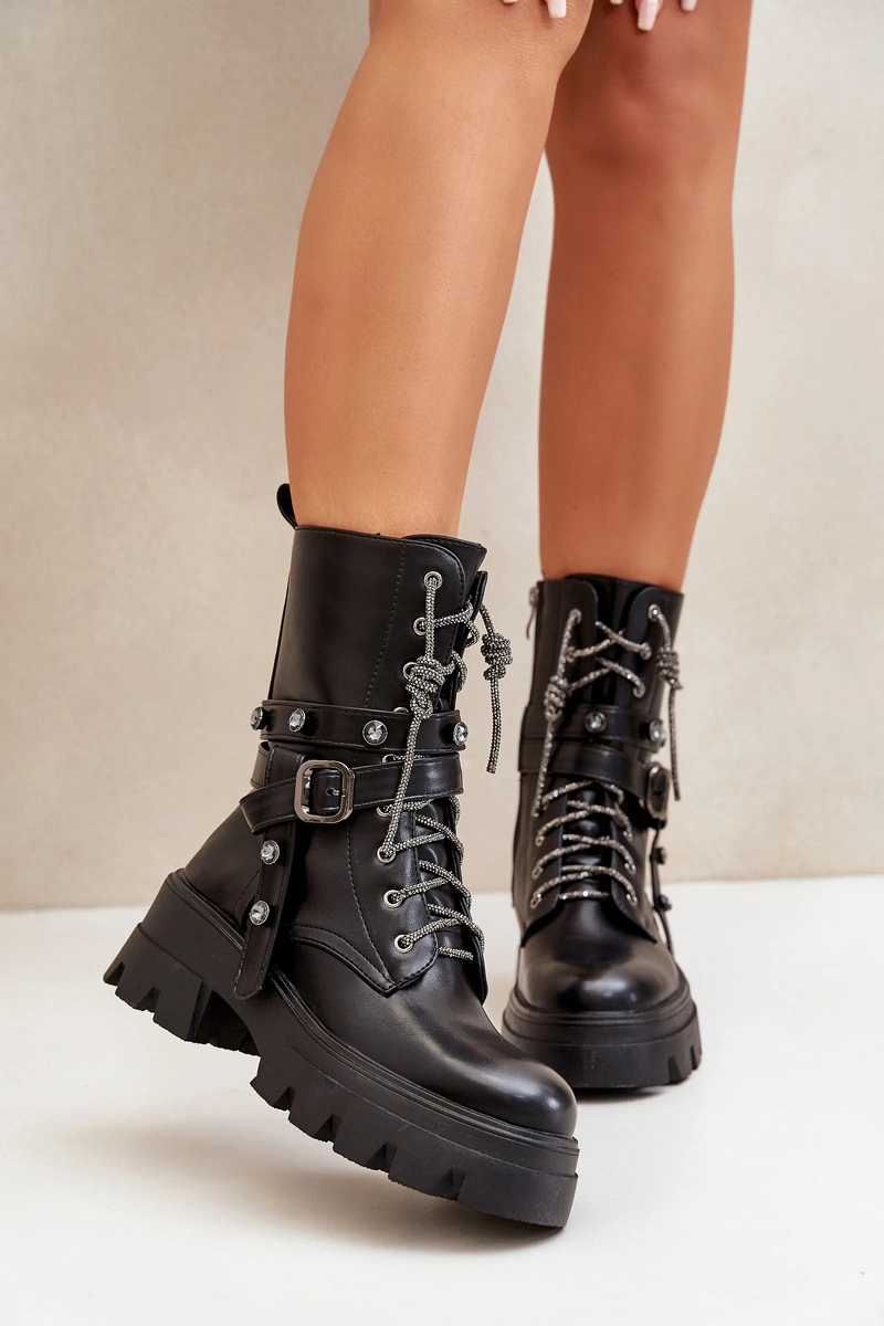 Ocieplane Botki Workery Damskie Z Paskami Czarne Berivana