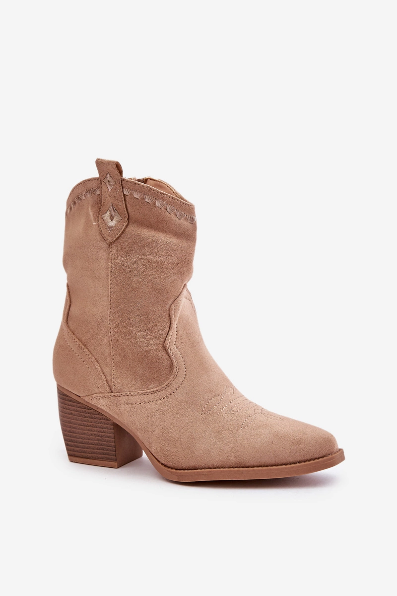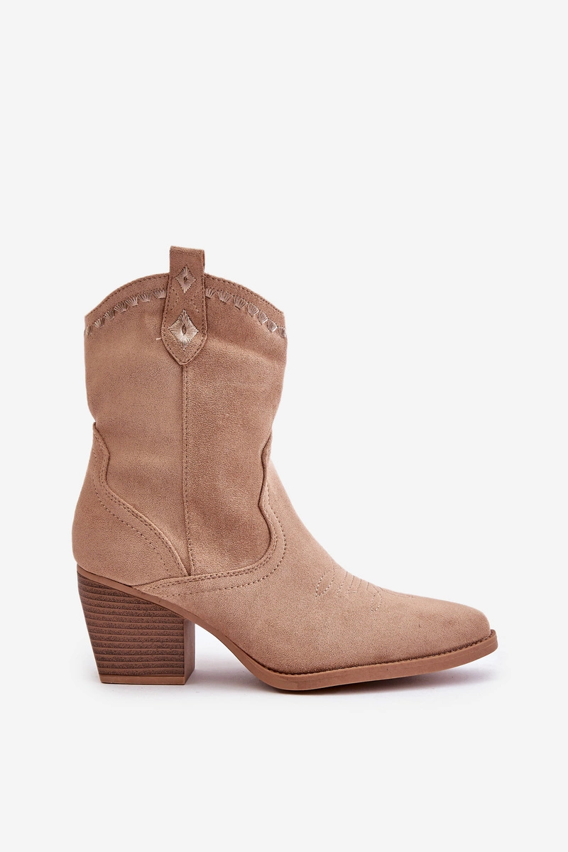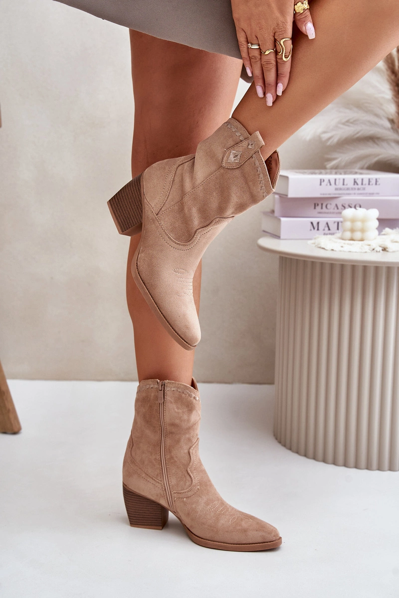 Botki Kowbojki Na Słupku Z Eko Zamszu Beżowe Narinae