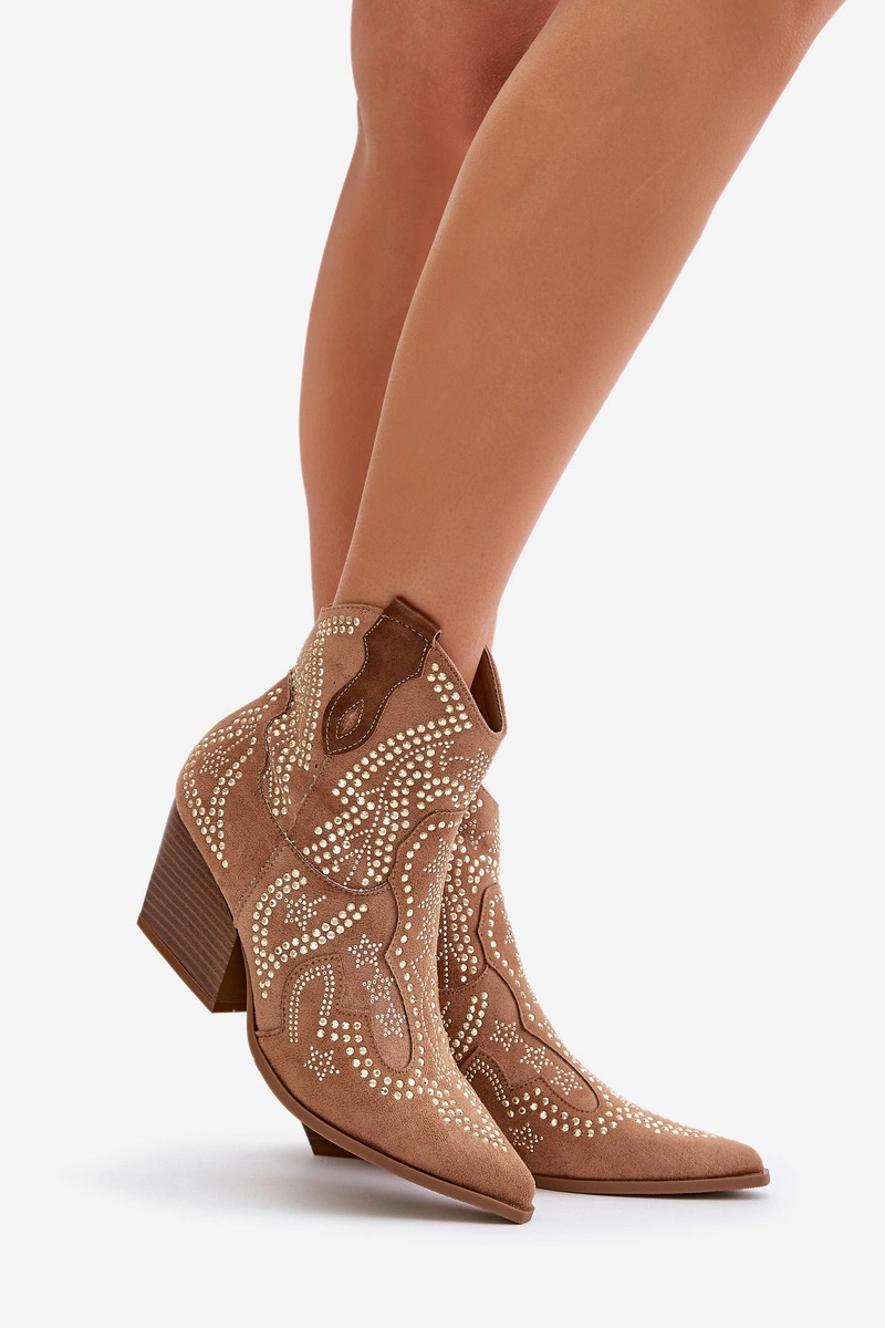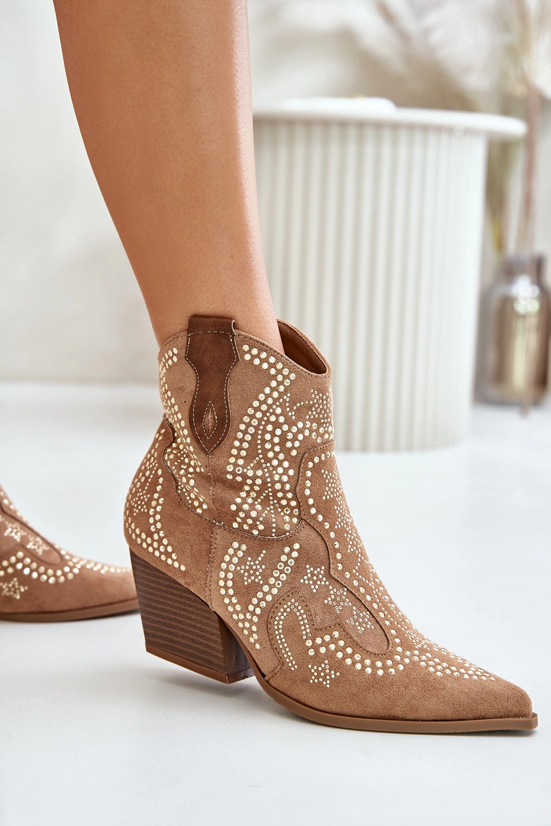 Zdobione Botki Kowbojki Na Obcasie Camel Kaivina
