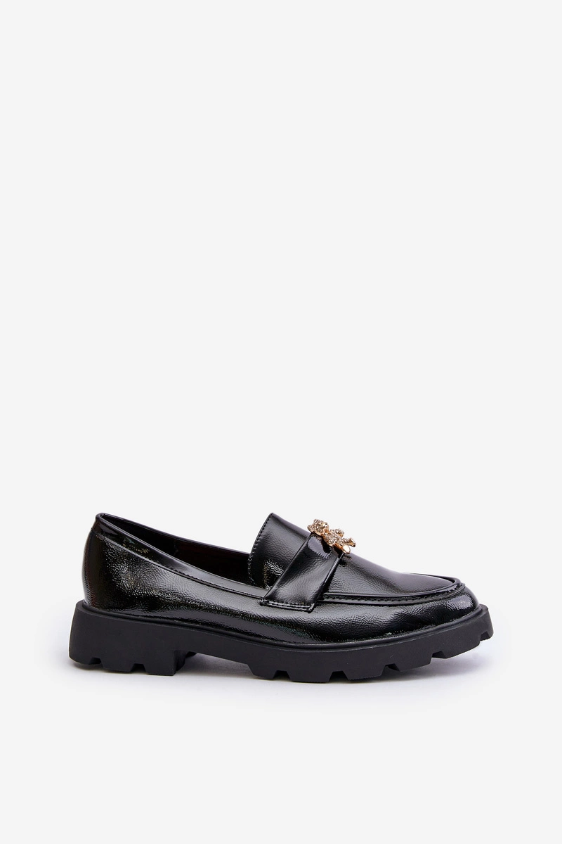 Lakierowane Damskie Mokasyny Z Misiem Czarne Kaithra