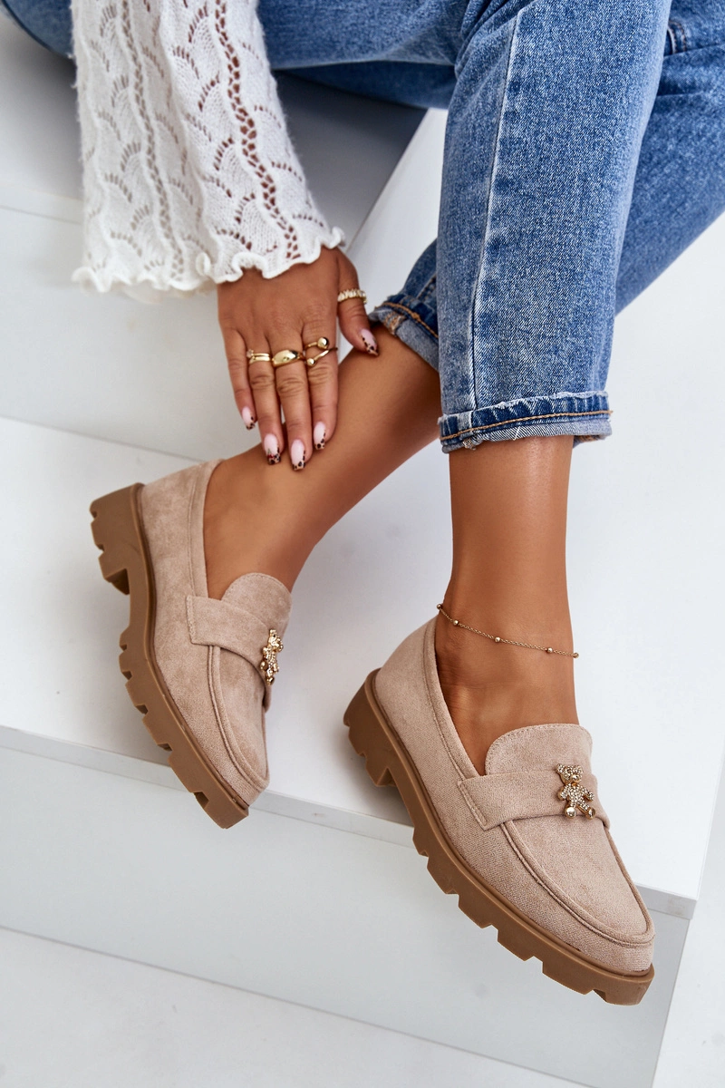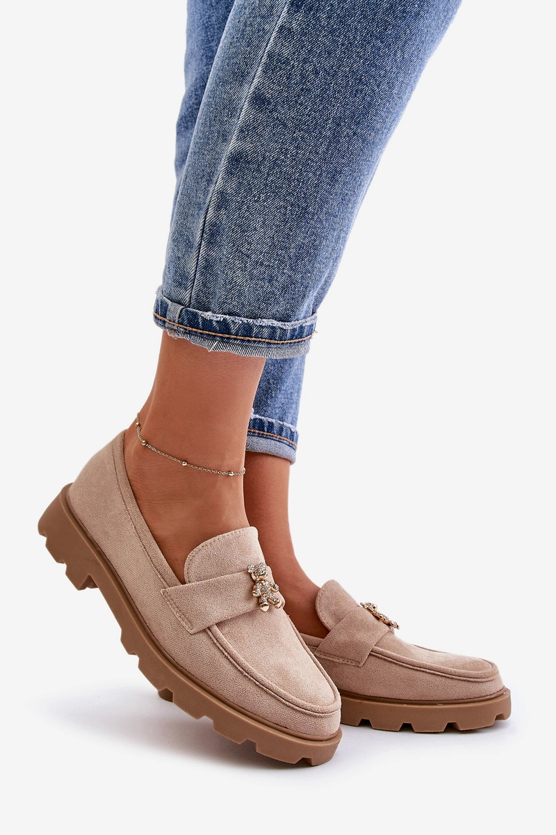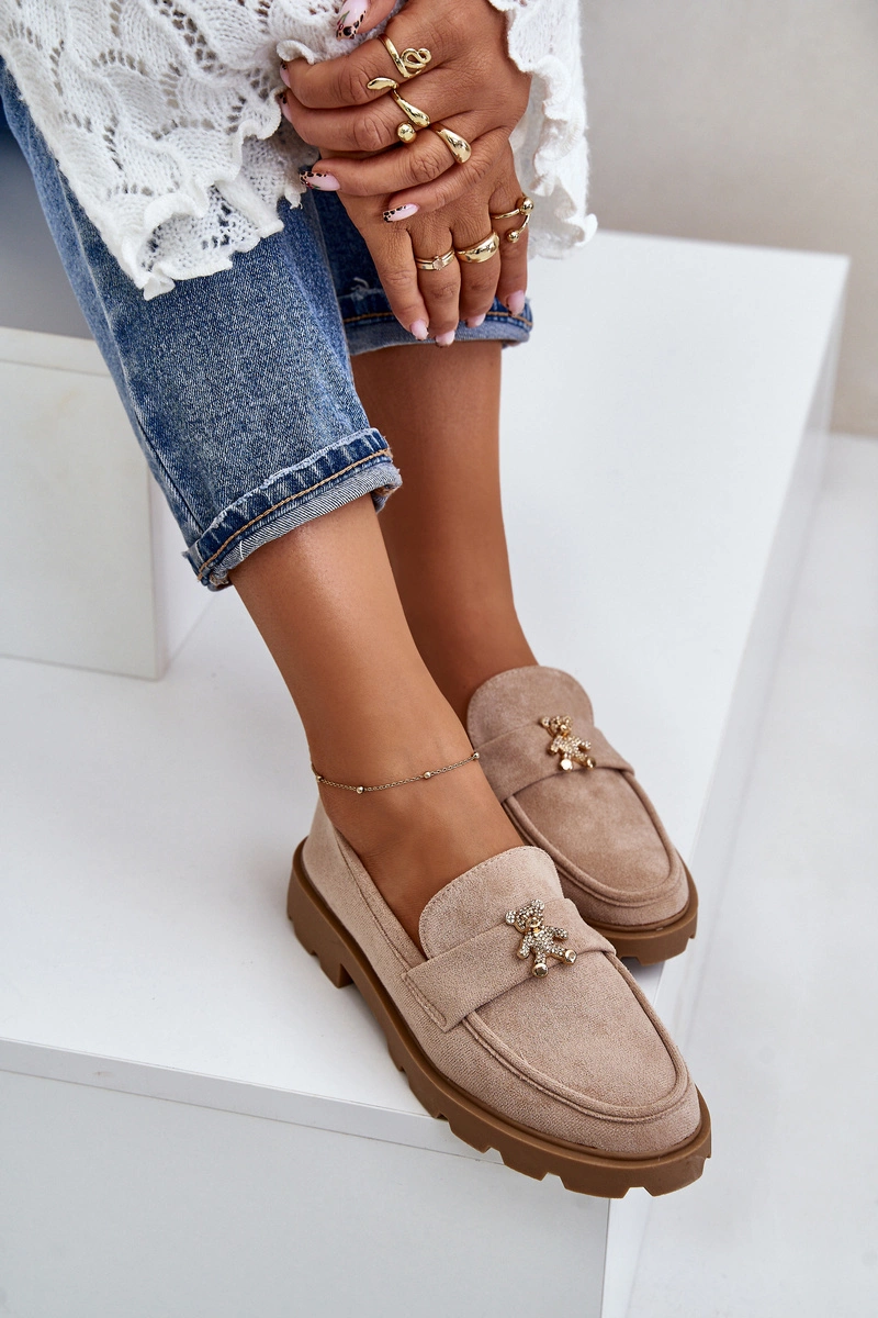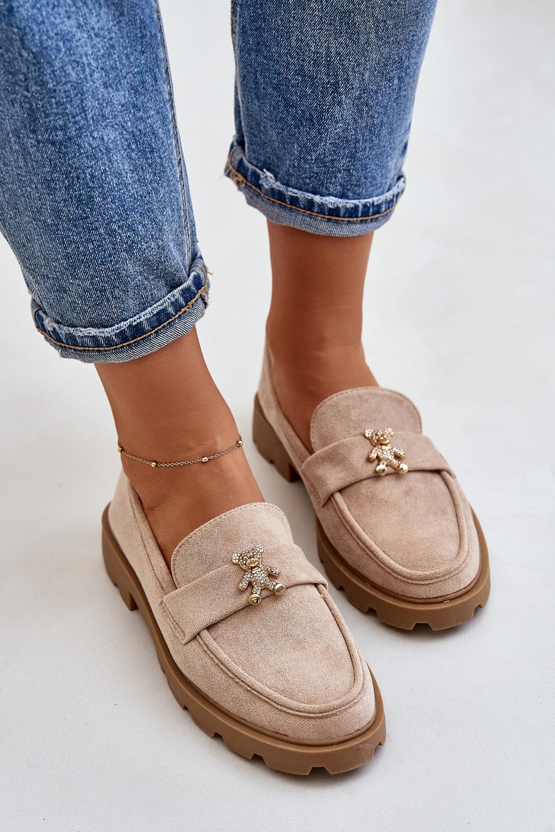 Eko Zamszowe Damskie Mokasyny Z Misiem Beżowe Kaithra