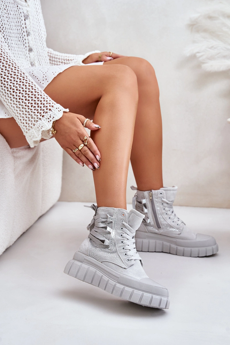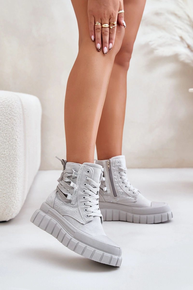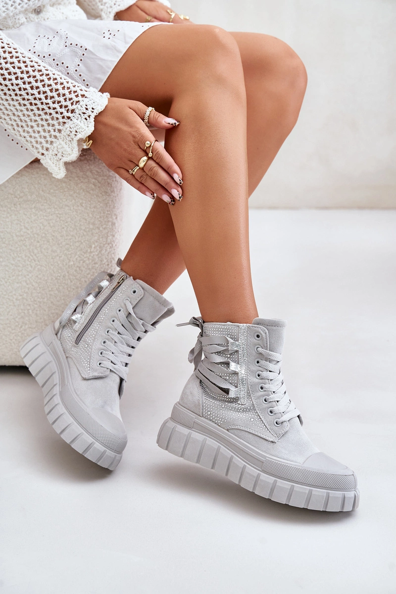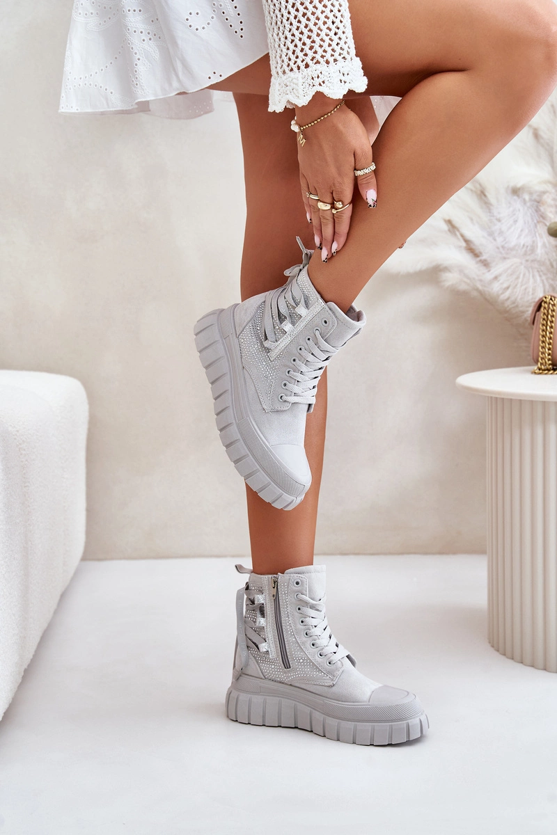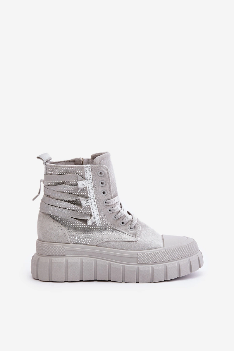 Wysokie Trampki Damskie Na Masywnej Platformie Ze Zdobieniem Szare Zaidria