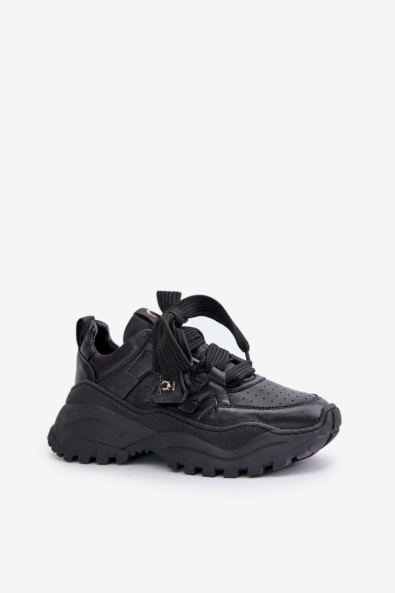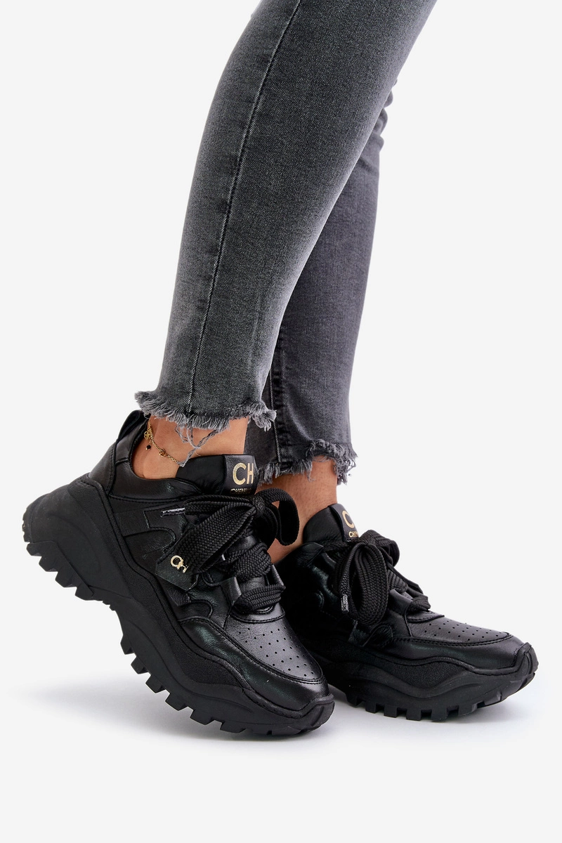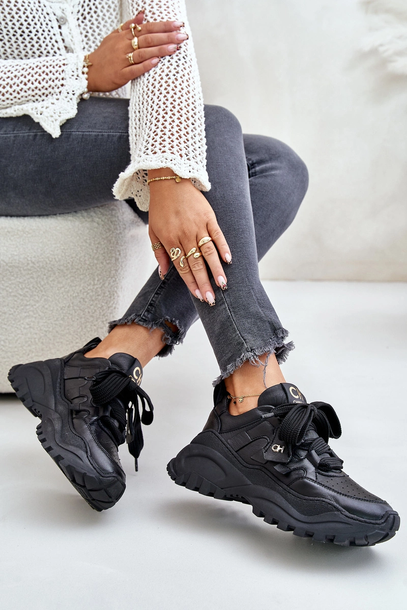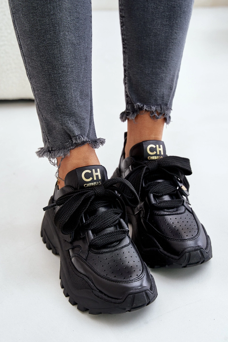 Damskie Skórzane Sneakersy Czarne CheBello 4583