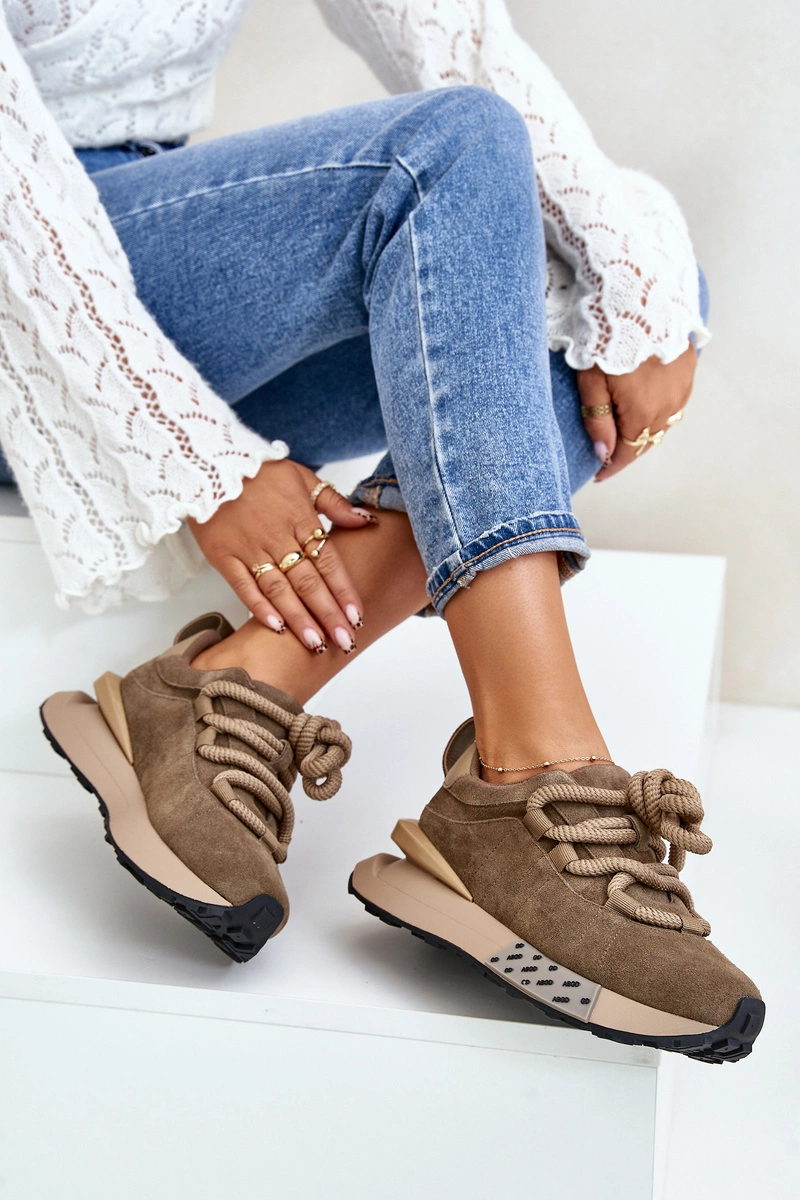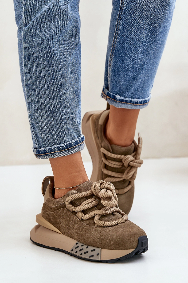 Zamszowe Sneakersy Damskie Na Platformie Z Grubym Sznurowaniem Artiker 54C1466 Jasnobrązowe