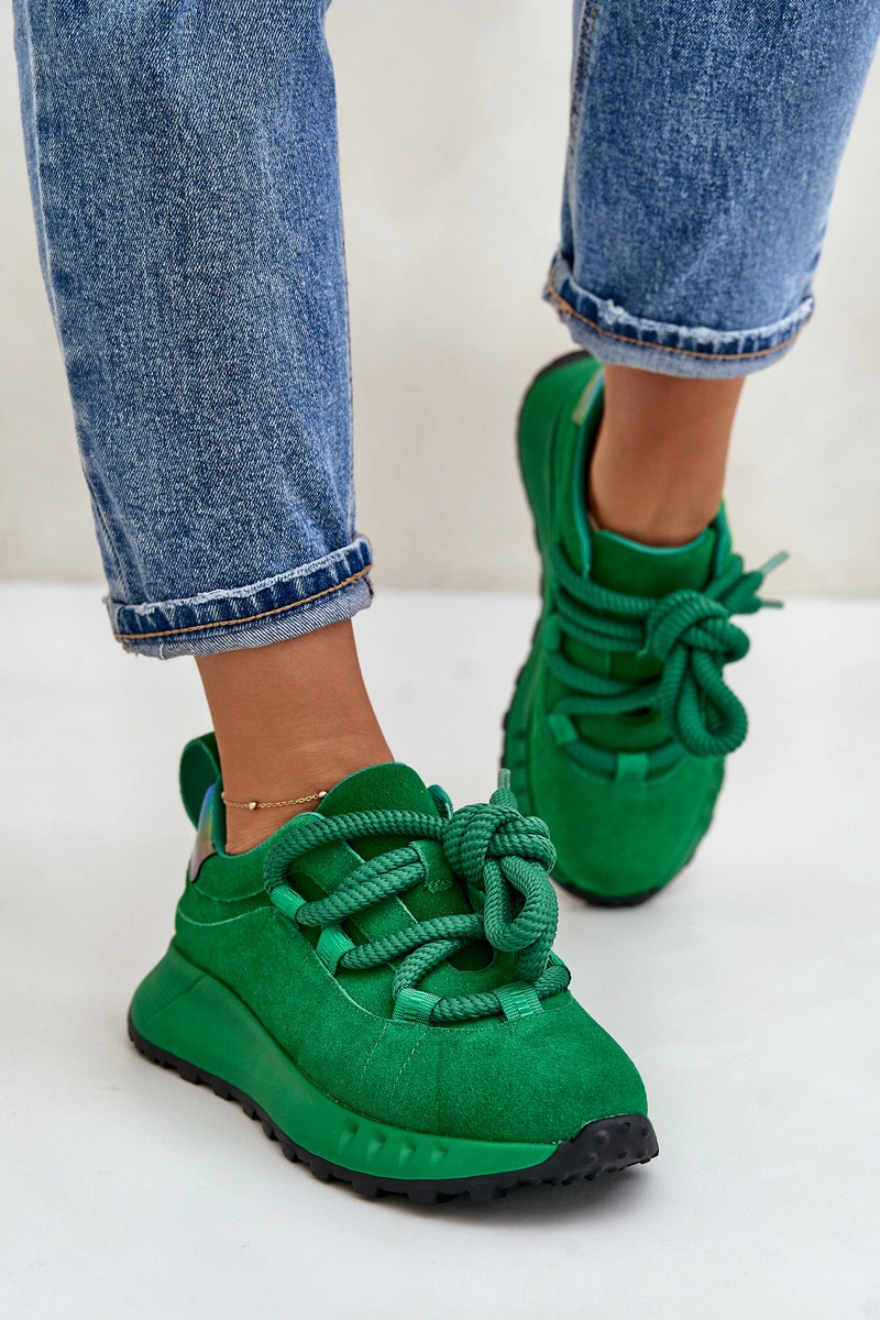Zamszowe Sneakersy Damskie Z Grubym Sznurowaniem Artiker 55C0099 Zielone