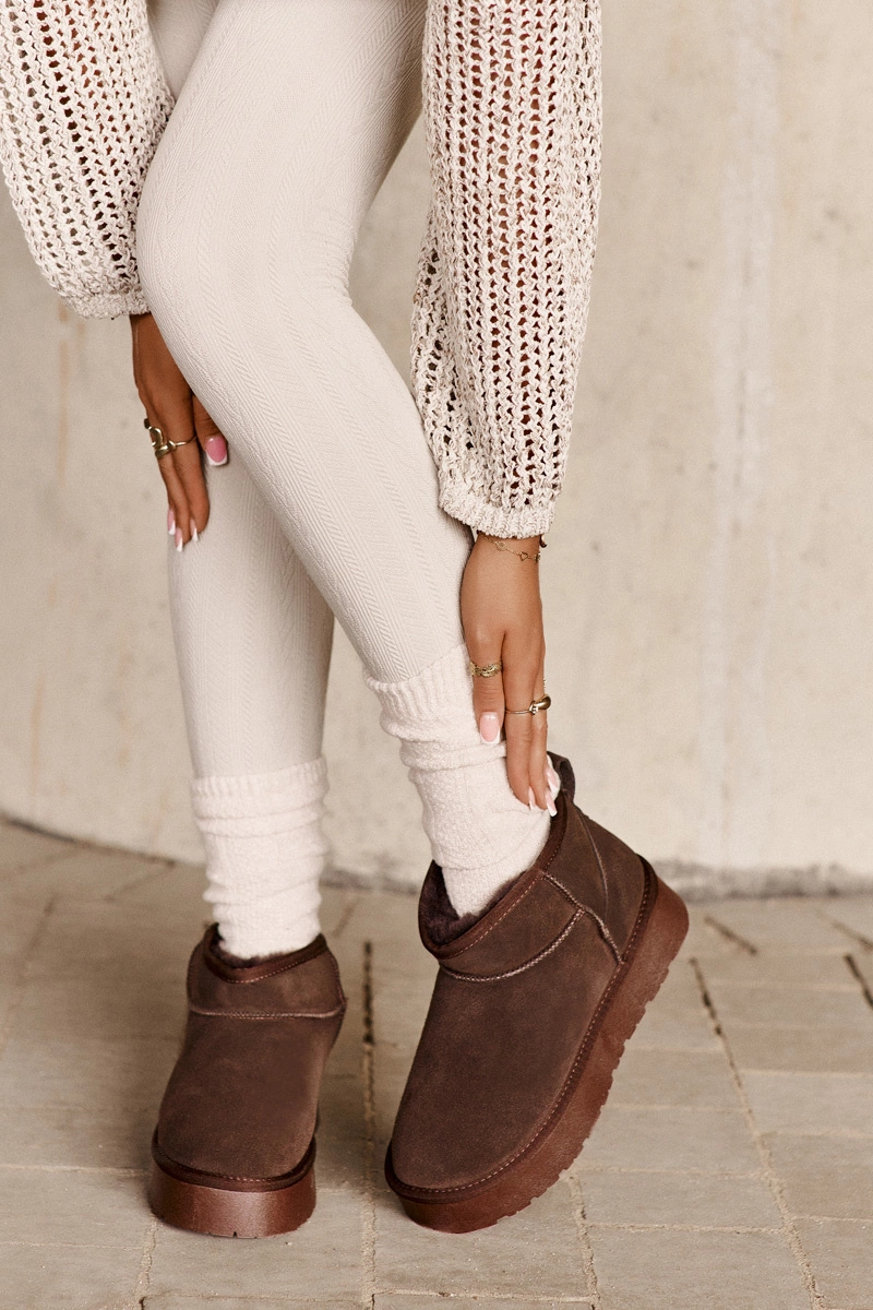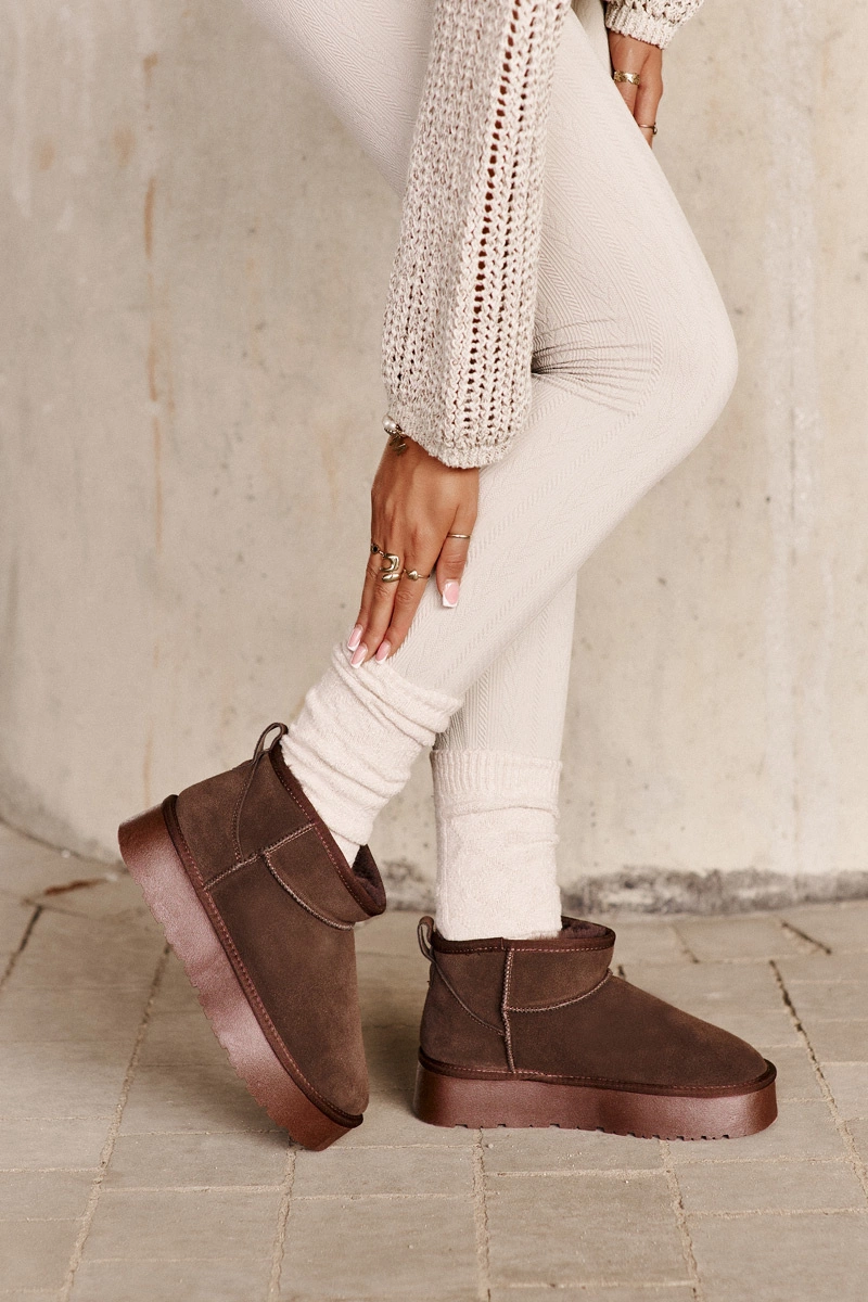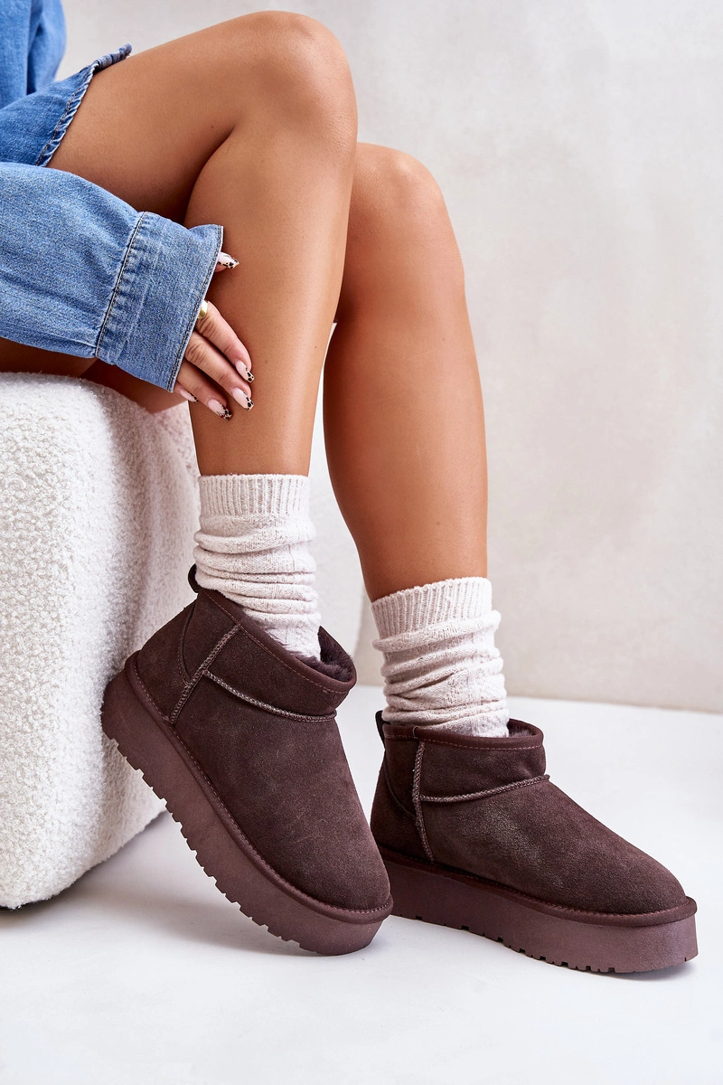 Modne Zamszowe Niskie Śniegowce Brązowe Nucca