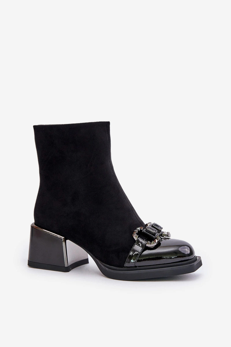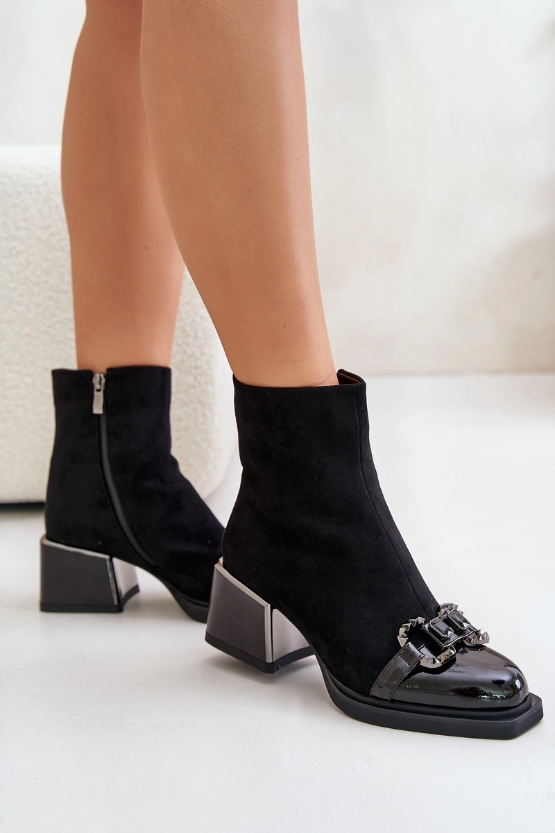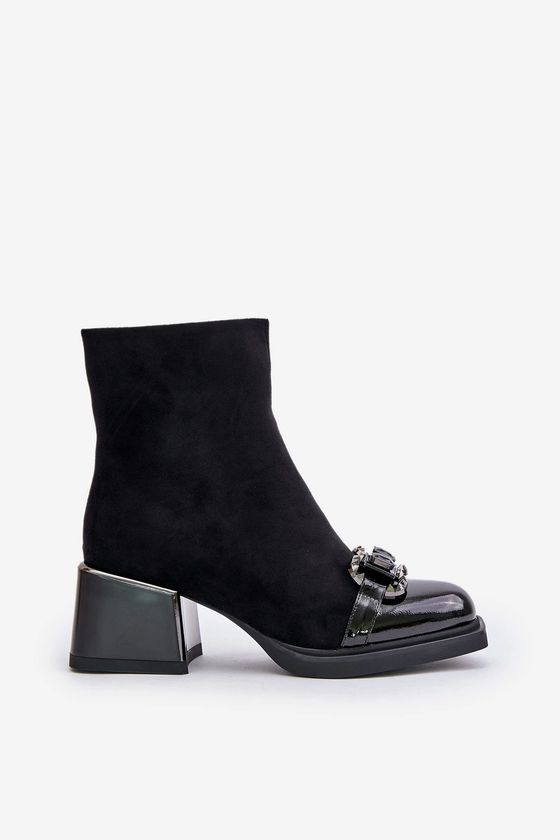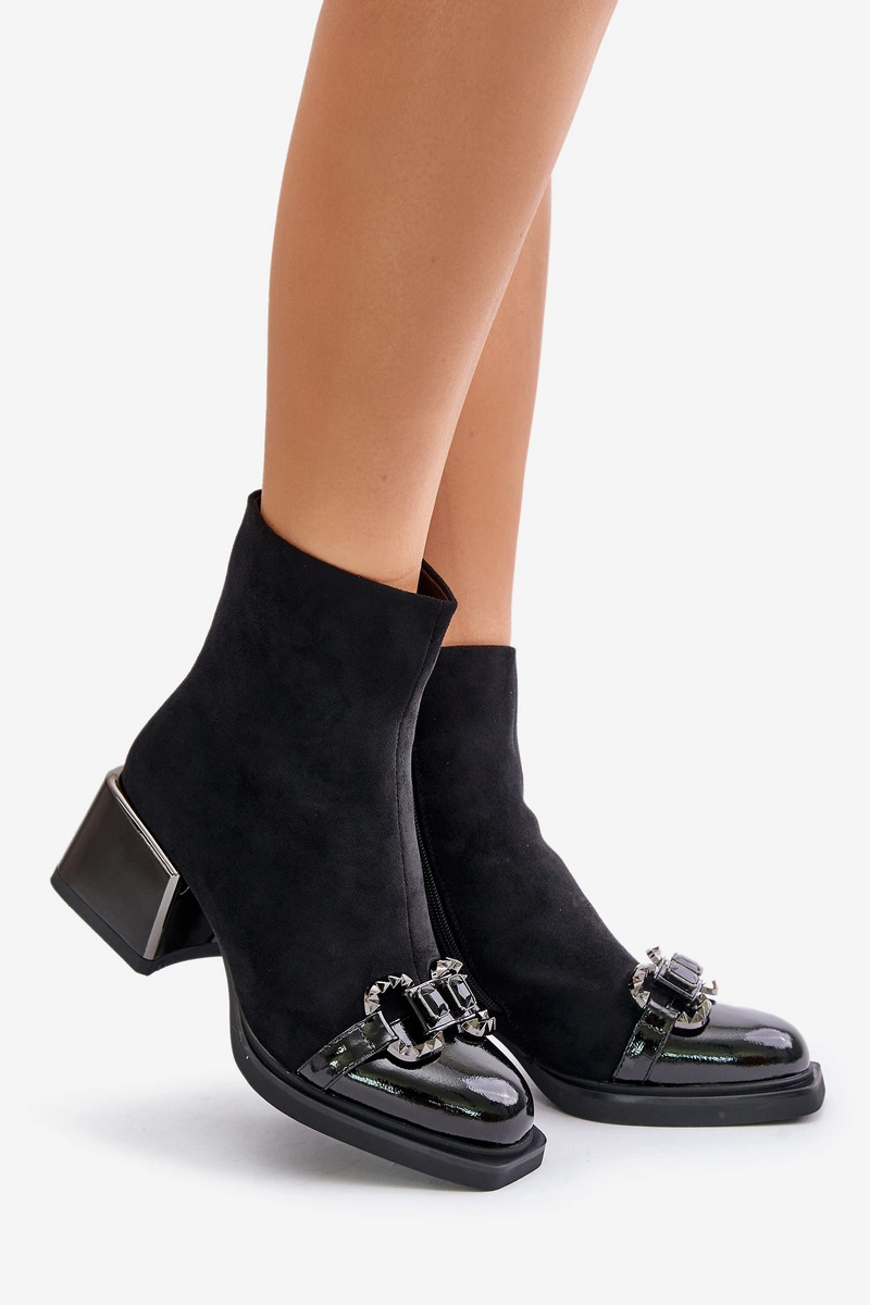 Eleganckie Botki Damskie Na Obcasie Z Ozdobą Czarne MR880-127