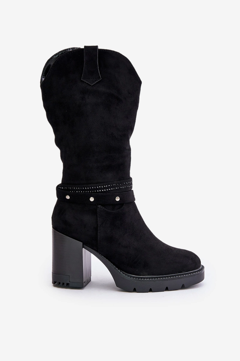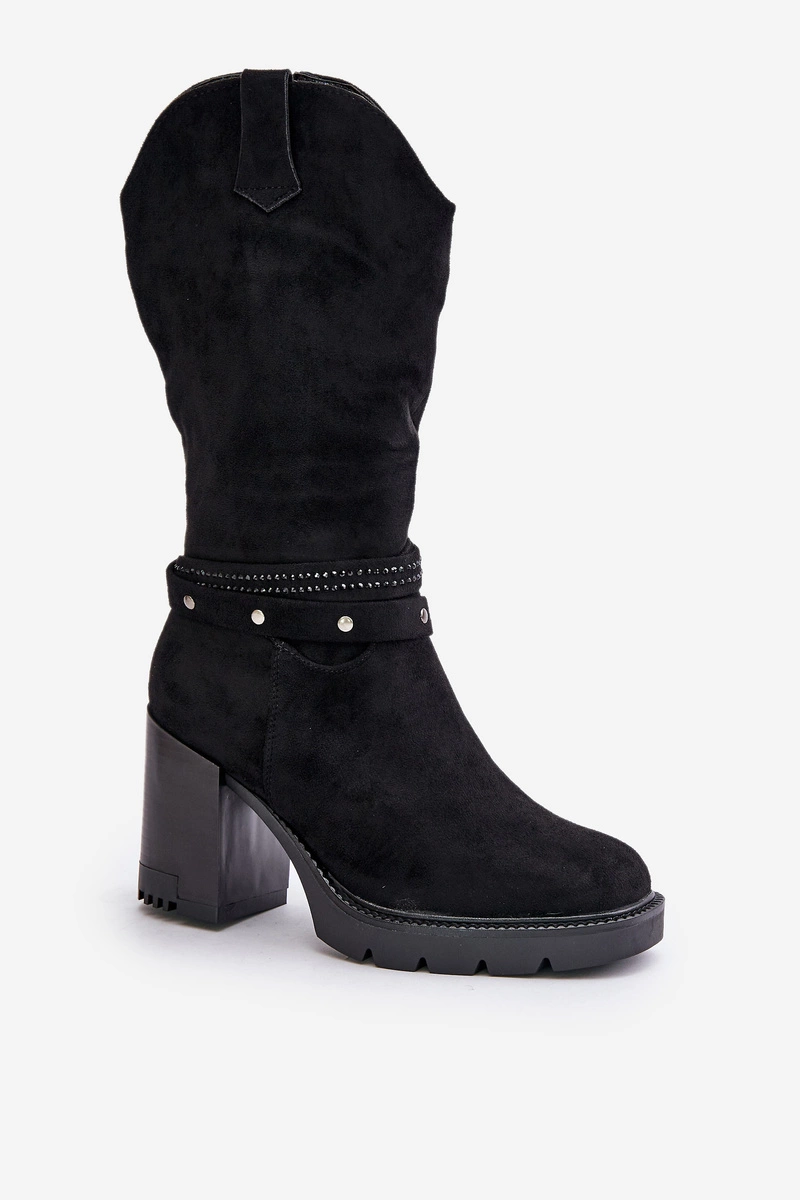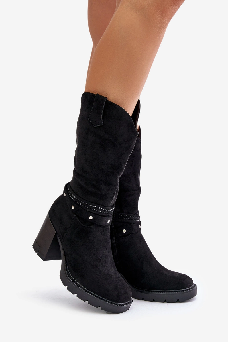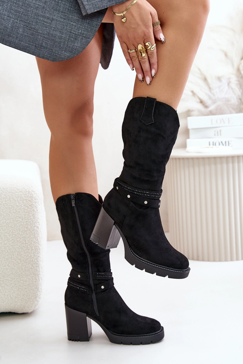 Kozaki Damskie Do Połowy Łydki Na Słupku Ocieplane Czarne Ivanelis