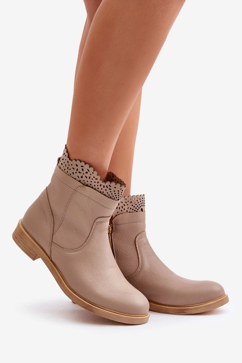 Niskie Botki Damskie Na Płaskim Obcasie Skórzane Lewski 3624 Beżowe