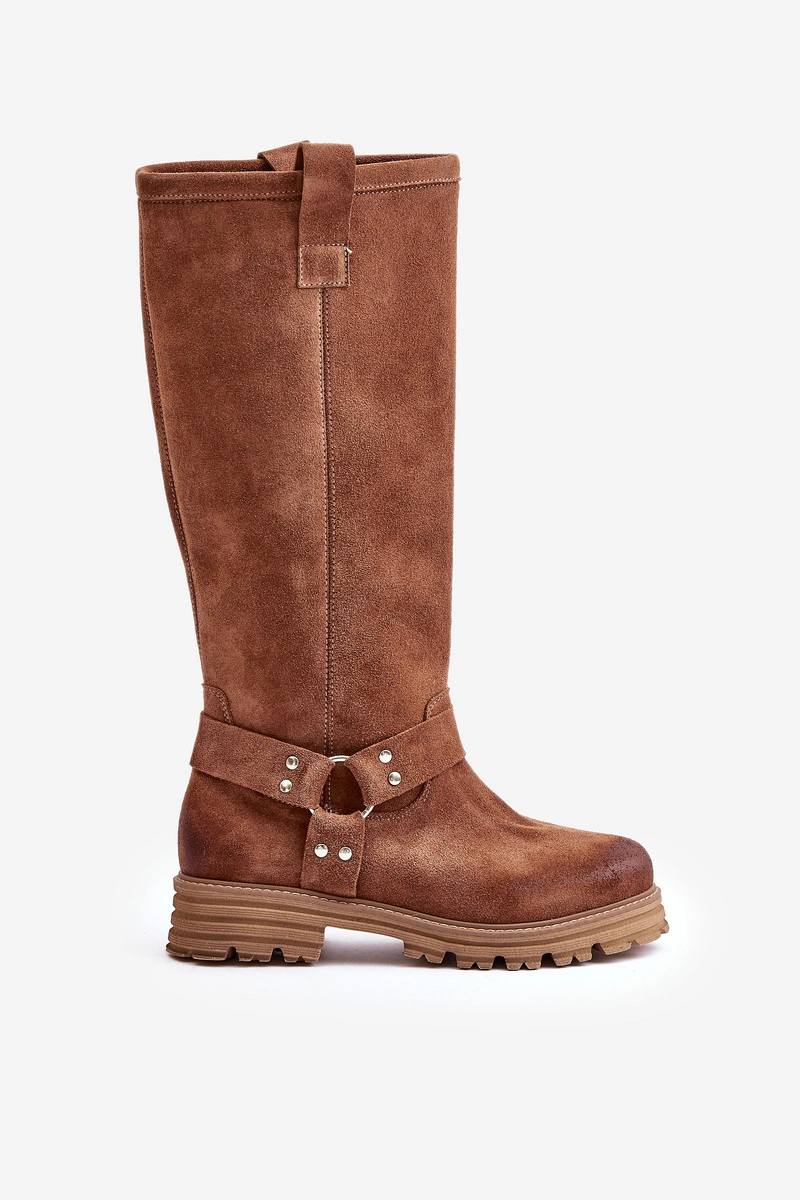Zamszowe Kozaki Damskie Przed Kolano Lewski 3615 Brązowe