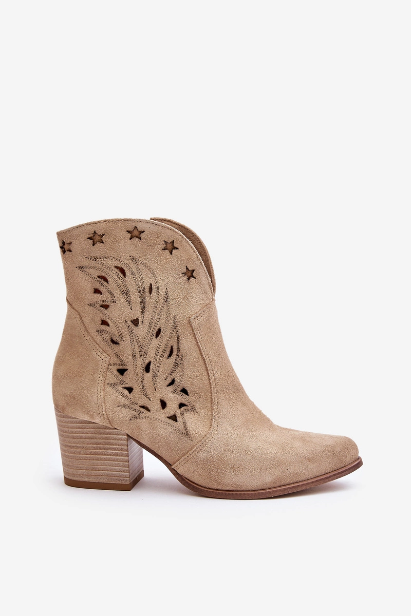 Ażurowe Botki Kowbojki Zamszowe Na Słupku Lewski 3613 Beżowe