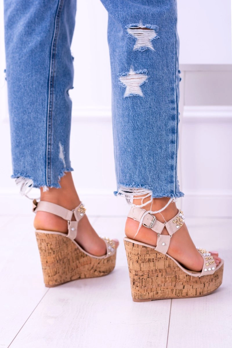 Lu Boo Beżowe Damskie Sandały Na Koturnie Ćwieki Valeria
