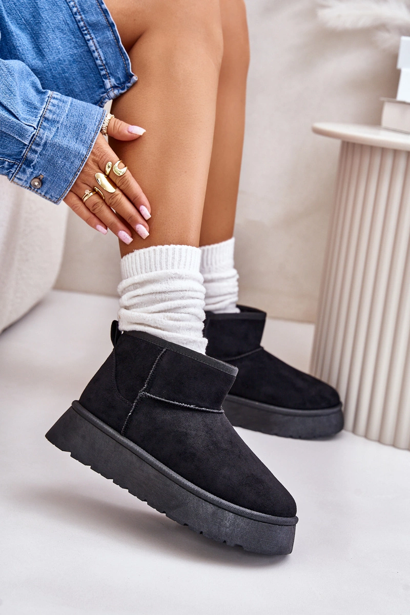 Śniegowce damskie wykonane z eko zamszu. Osadzone na platformie, która świetnie odizoluje od zimnego podłoża. Grube futerko w środku zapewni ciepło nawet w najmroźniejsze dni. Niezwykle modny fason tego obuwia pozwala zestawić je z różnorodnymi stylizacjami, dodając charakteru każdemu zimowemu outfitowi! Przy wyborze rozmiaru prosimy sugerować się tabelą rozmiarów.