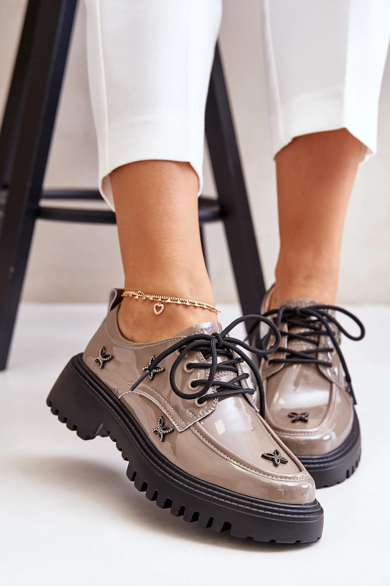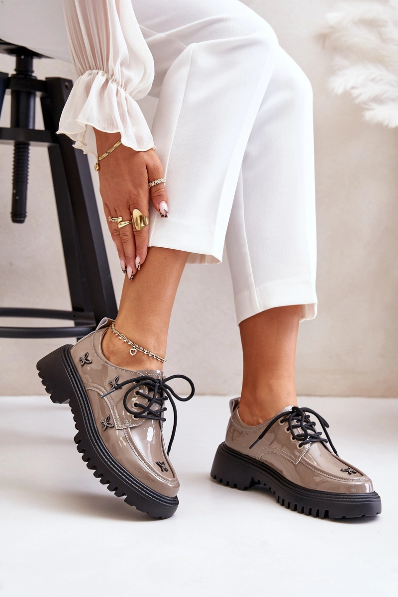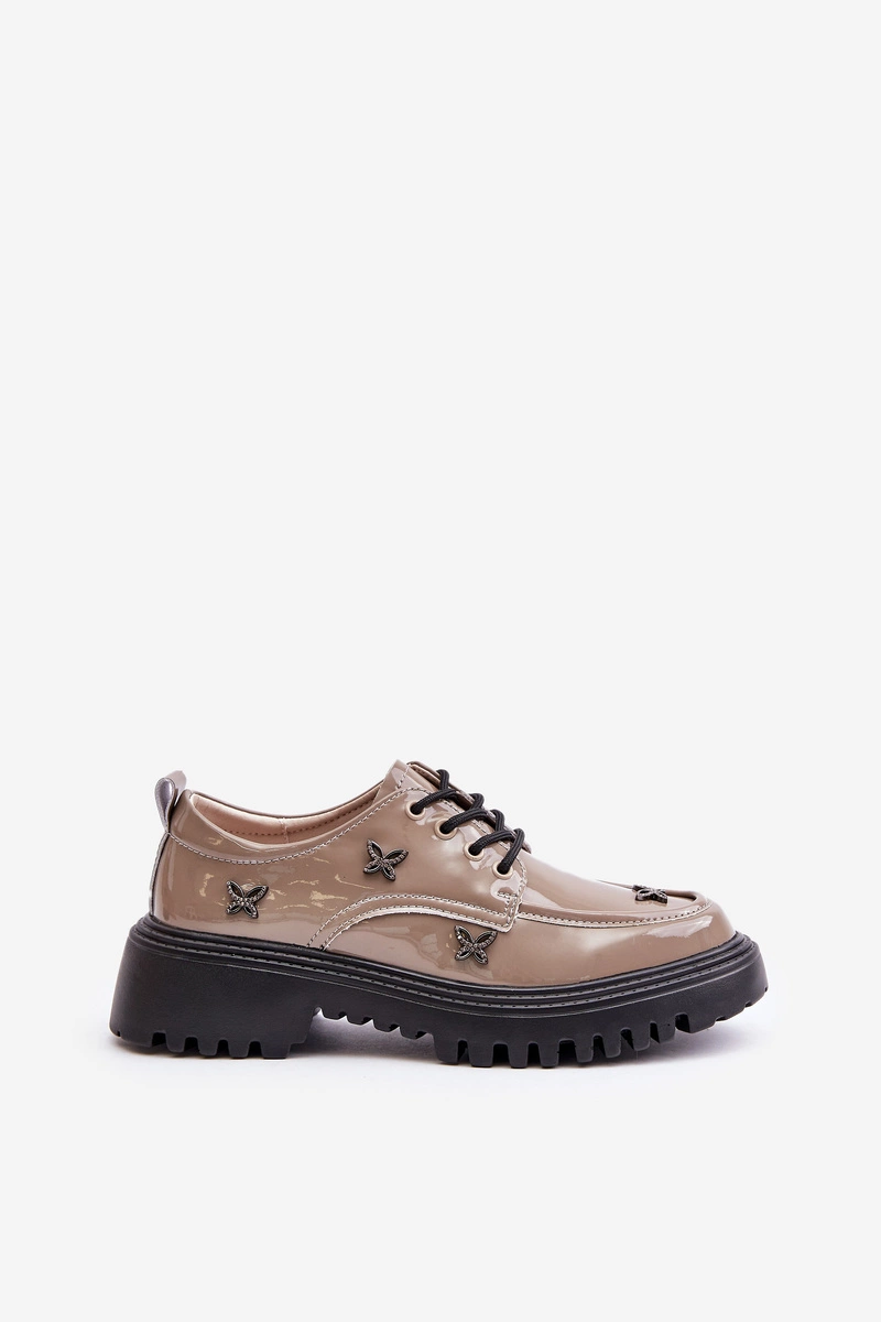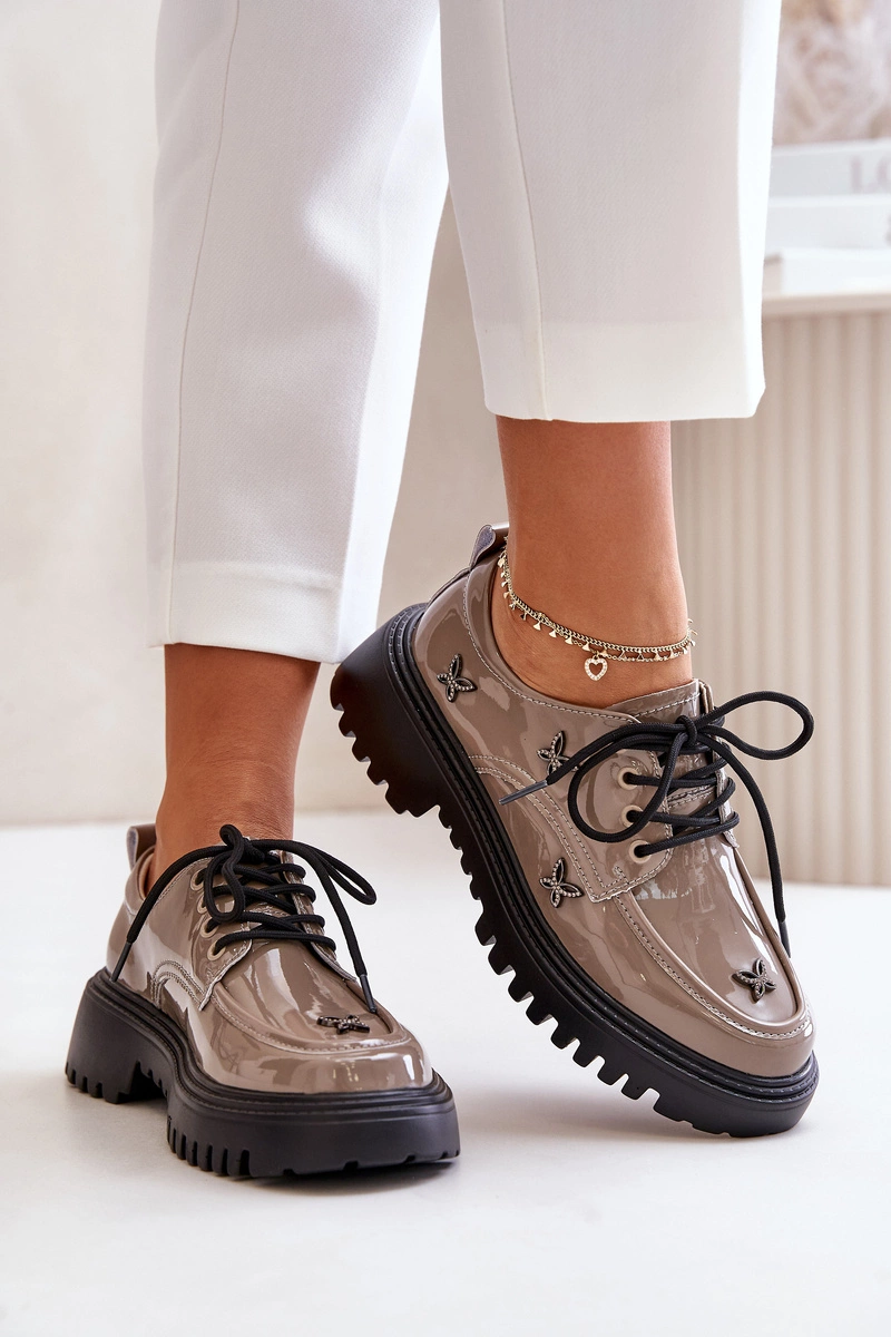 Lakierowane Półbuty Damskie Z Ozdobami Skóra Naturalna Artiker 55C1010 Ciemnobeżowe