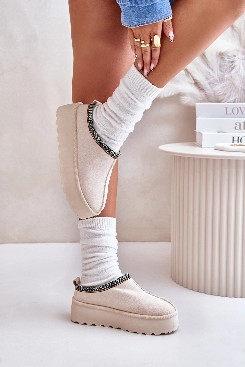 Kapcie Damskie Na Platformie Z Haftem Jasnobeżowe Neroma