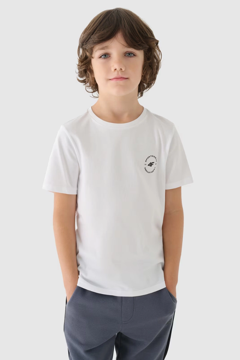 Gładki Bawełniany T-shirt Chłopięcy Regular 4FJWAW24TTSHM1859-10S Biały