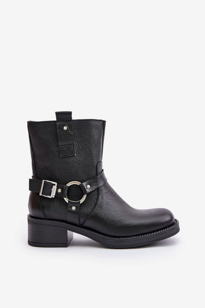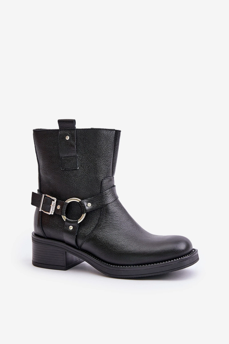 Zazoo 60480 Skórzane Botki Na Niskim Obcasie Ocieplane Czarne
