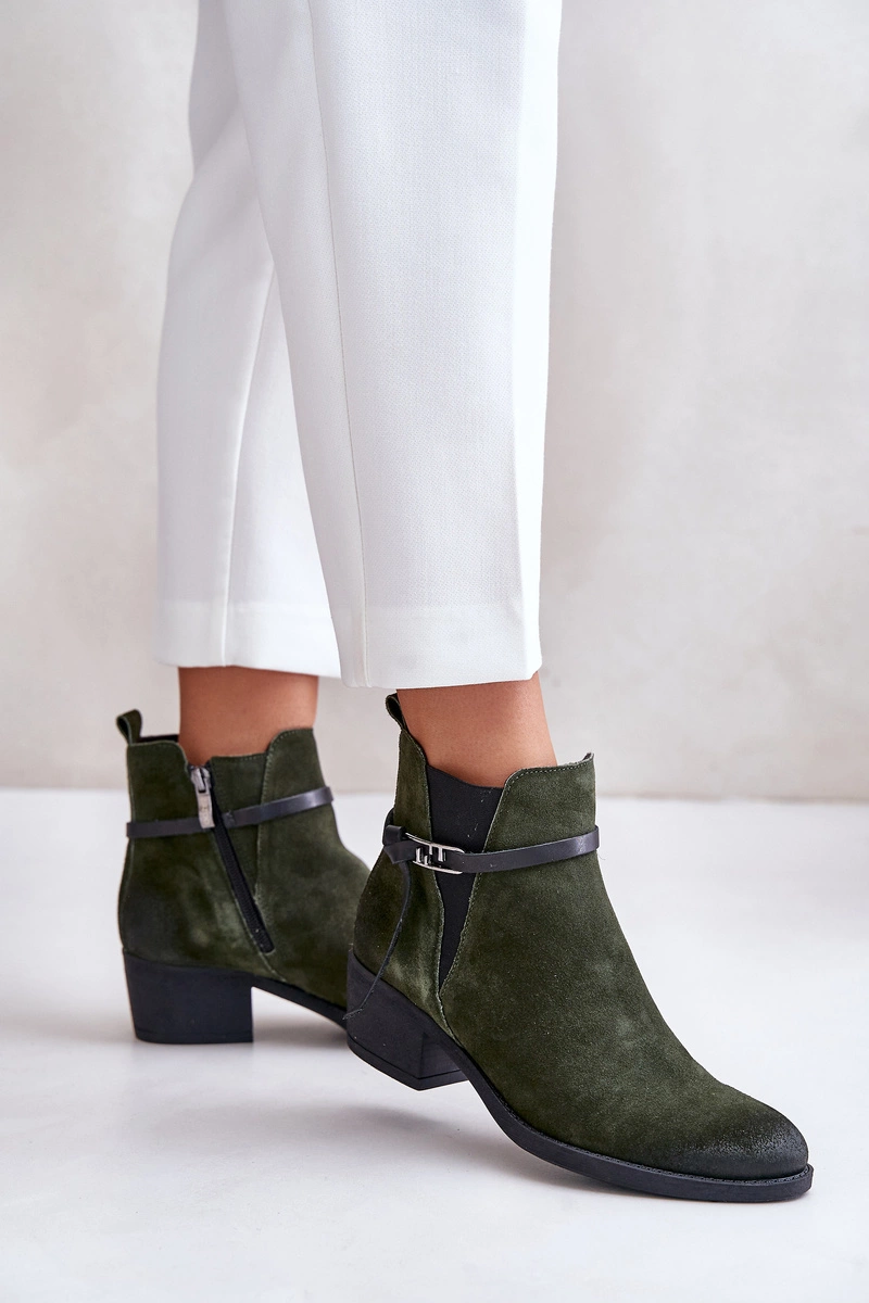 Botki z naturalnego zamszu to elegancki wybór na chłodniejsze dni. Zapięcie na zamek ułatwia ich zakładanie, a ocieplone filcem wnętrze zapewnia komfort i ciepło. Noski w kształcie migdała dodają subtelnego charakteru, a cienki ozdobny paseczek wokół cholewki stanowi stylowy akcent, który dopełnia całość. Przy wyborze rozmiaru prosimy kierować się tabelą rozmiarów