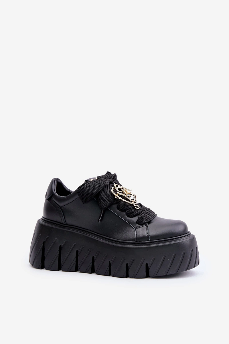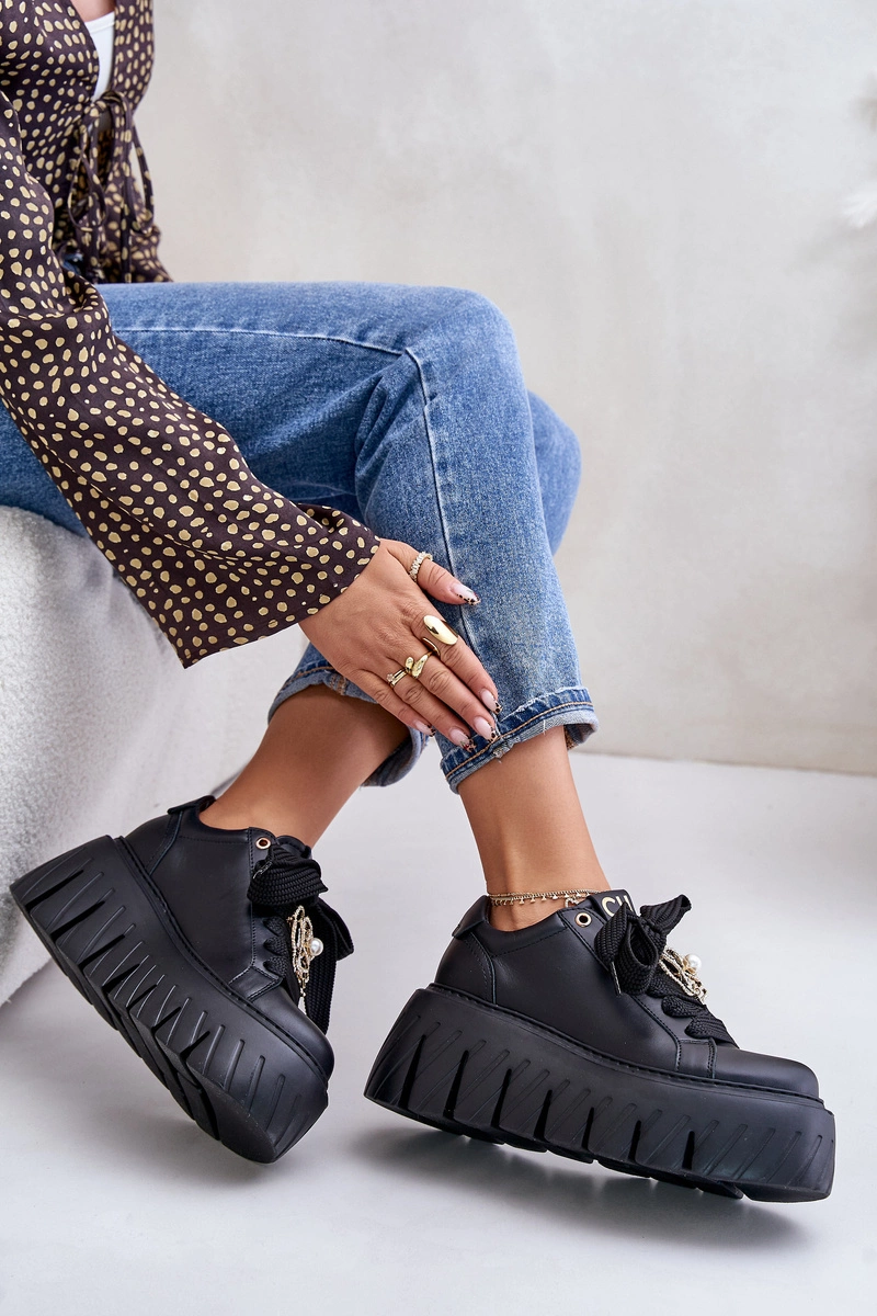 Sneakersy Damskie Na Masywnej Podeszwie Ze Złotą Ozdobą CheBello 4530 Czarne