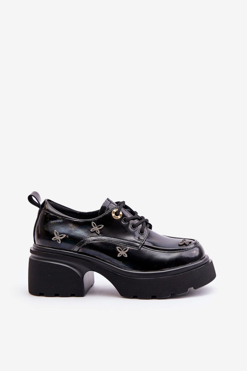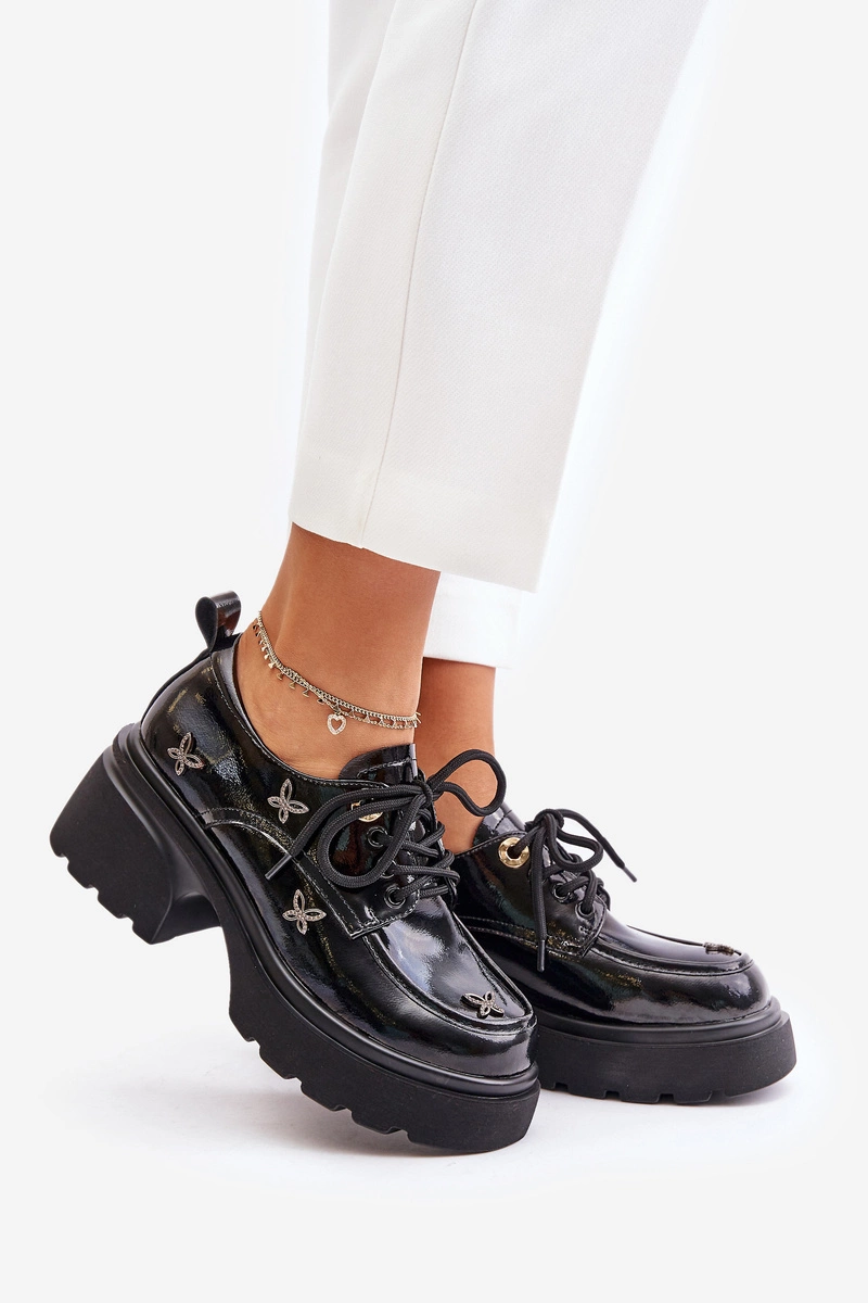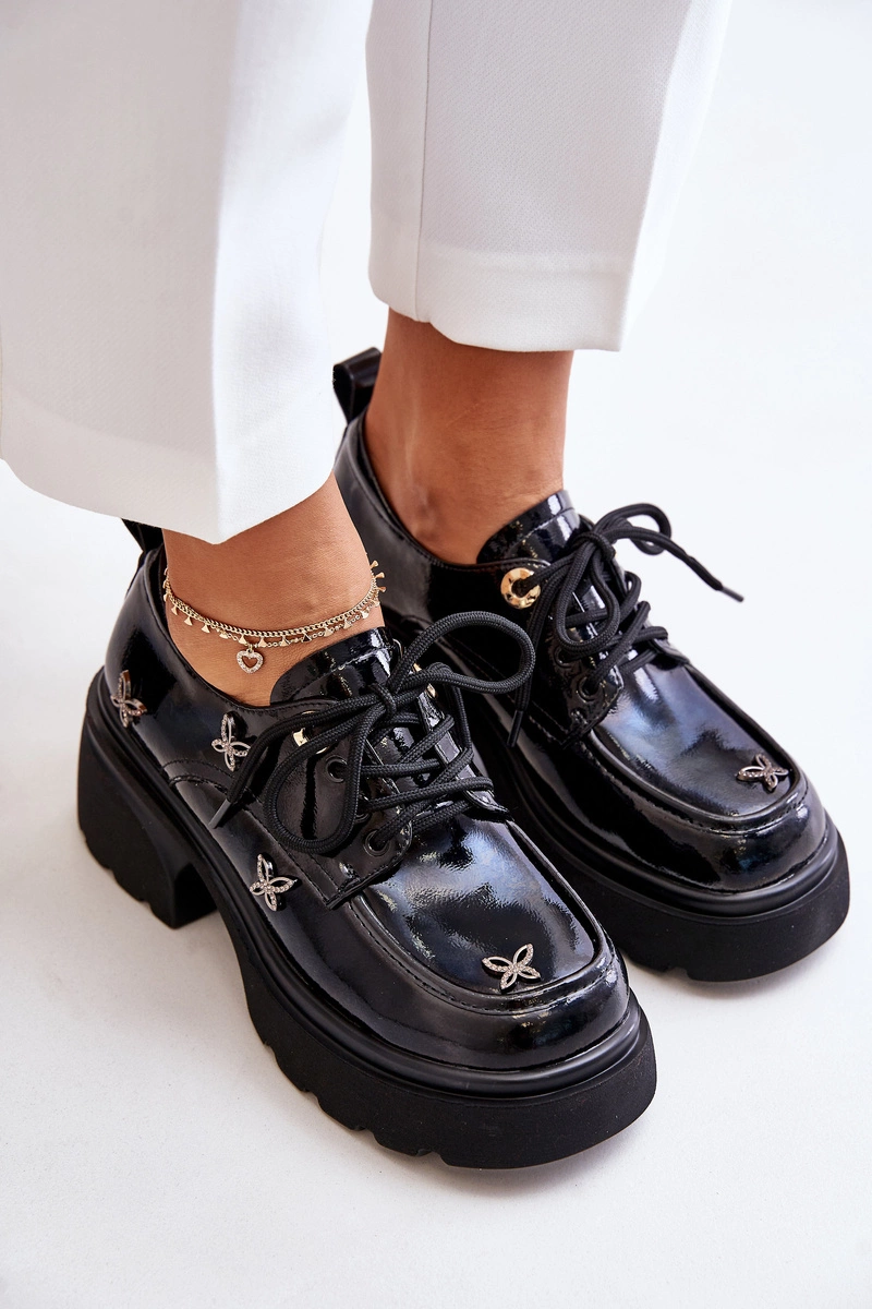 Lakierowane Półbuty Damskie Z Ozdobami Skóra Naturalna Artiker 55C0419 Czarne