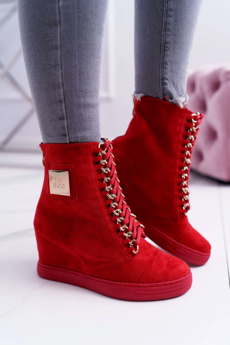 Damskie Trampki Lu Boo Z Łańcuchami Zamszowe Czerwone Monica