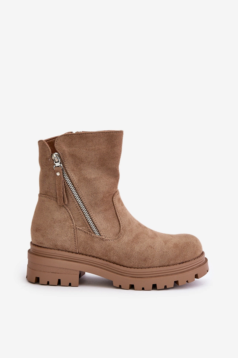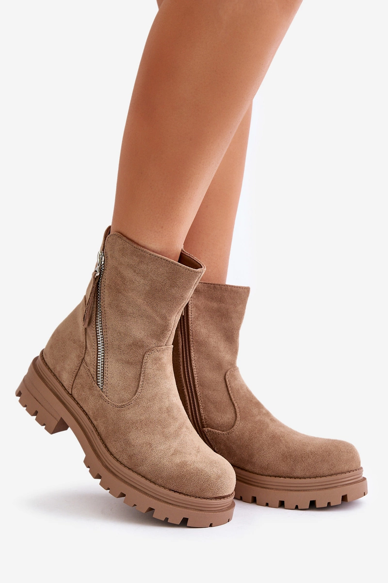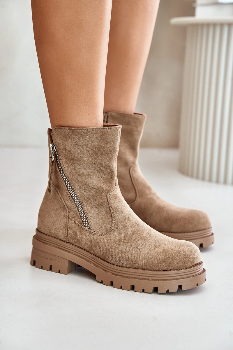 Botki Ocieplane Na Płaskim Obcasie Z Eko Zamszu Beżowe Reloma
