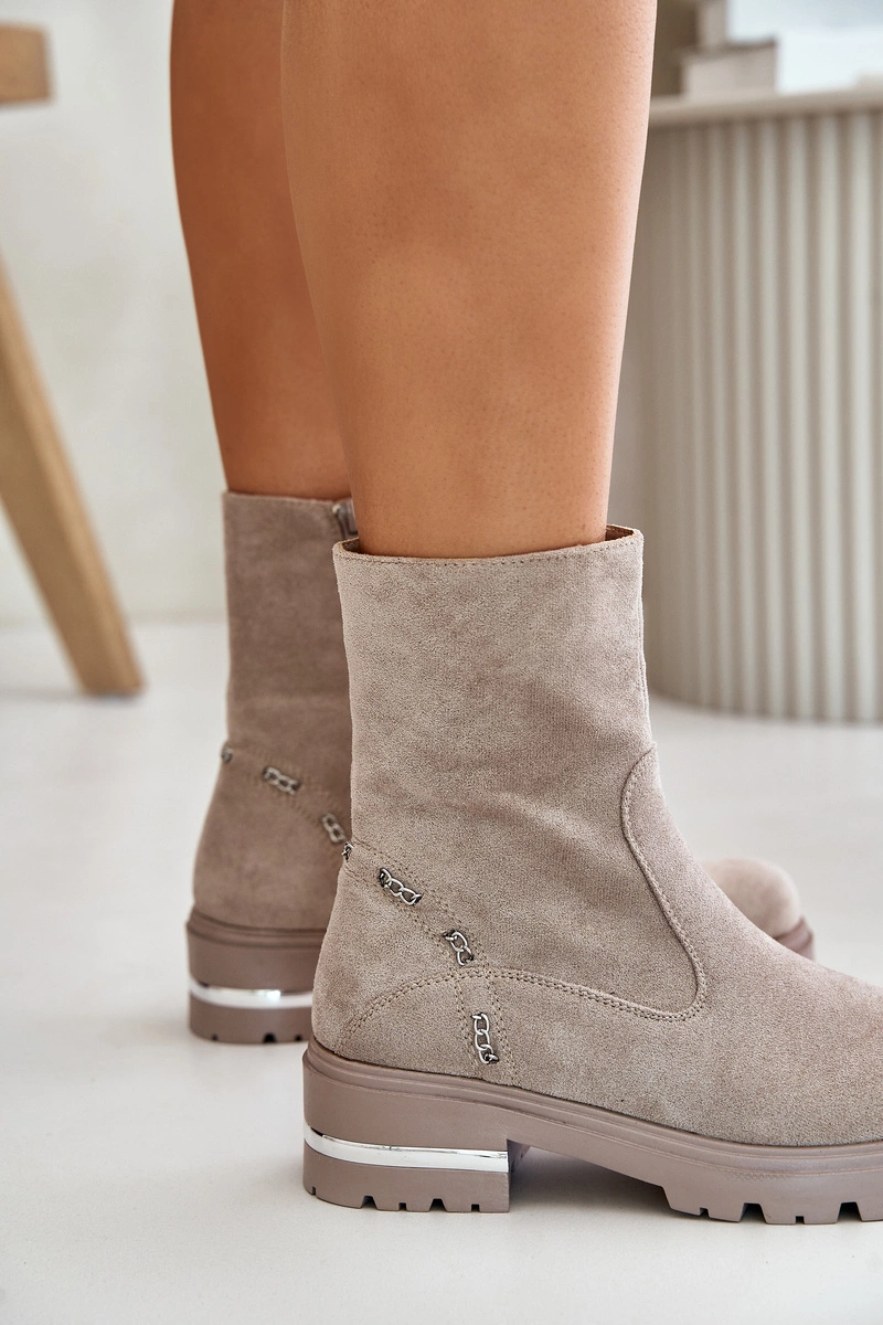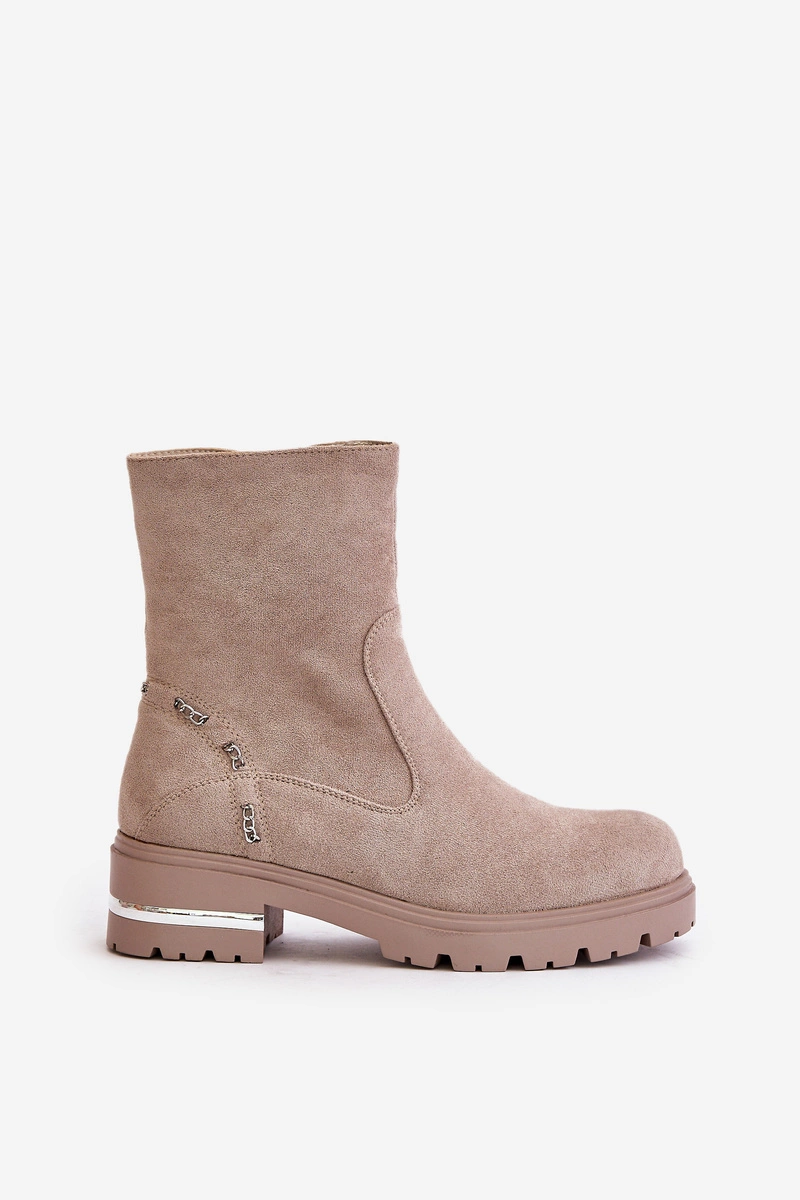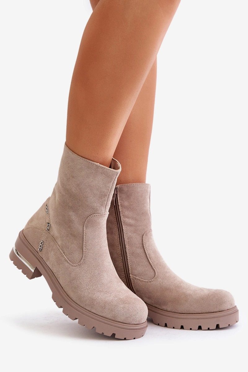 Ocieplane Botki Damskie Z Eko Zamszu Na Zamek Beżowe Narilie
