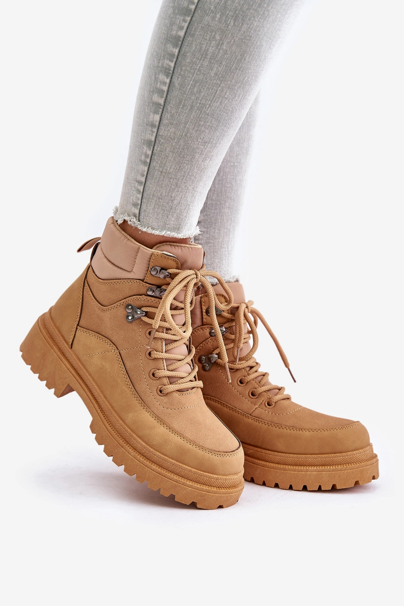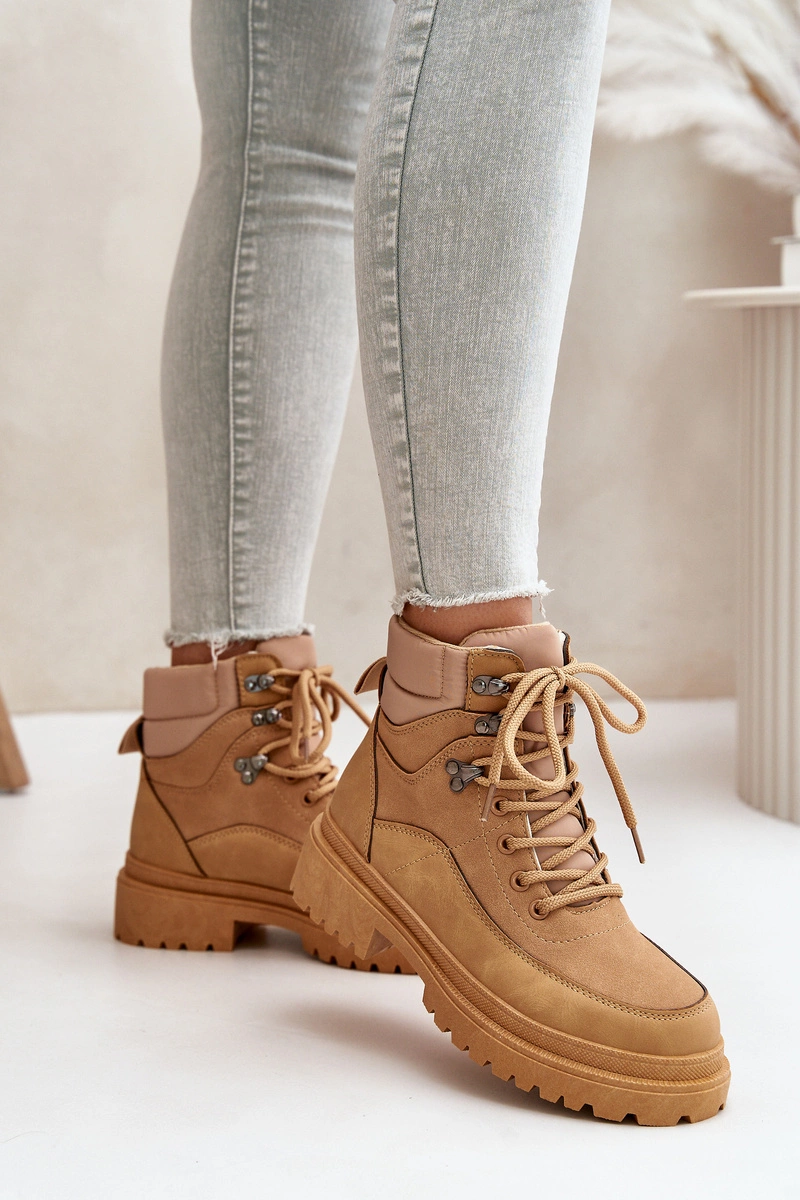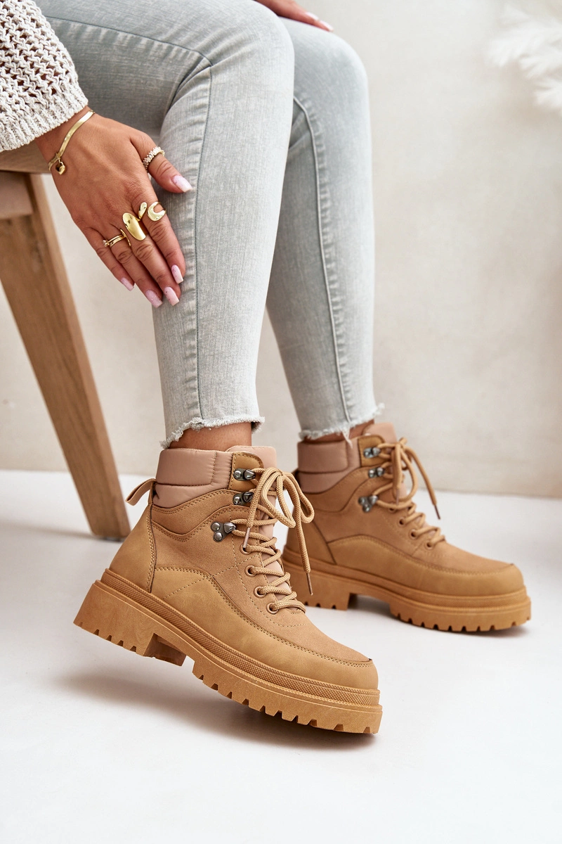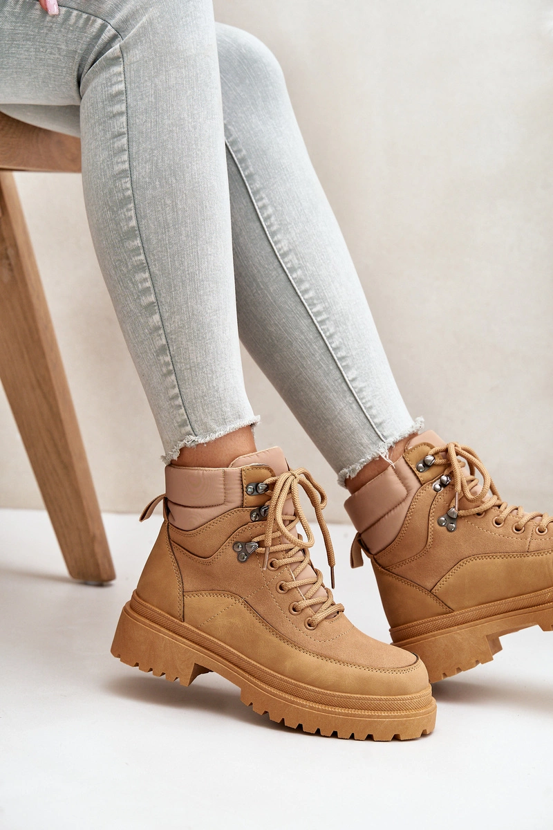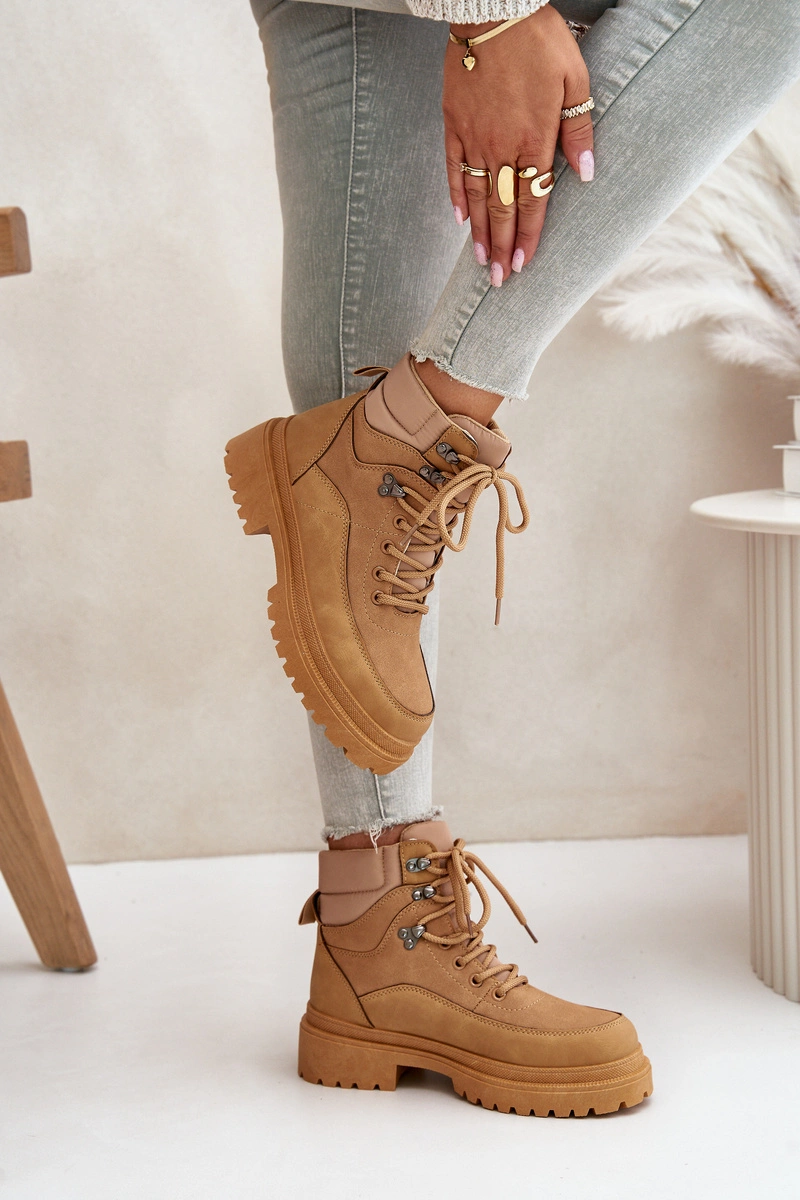 Botki Trapery Damskie Sznurowane Camel Rabaria