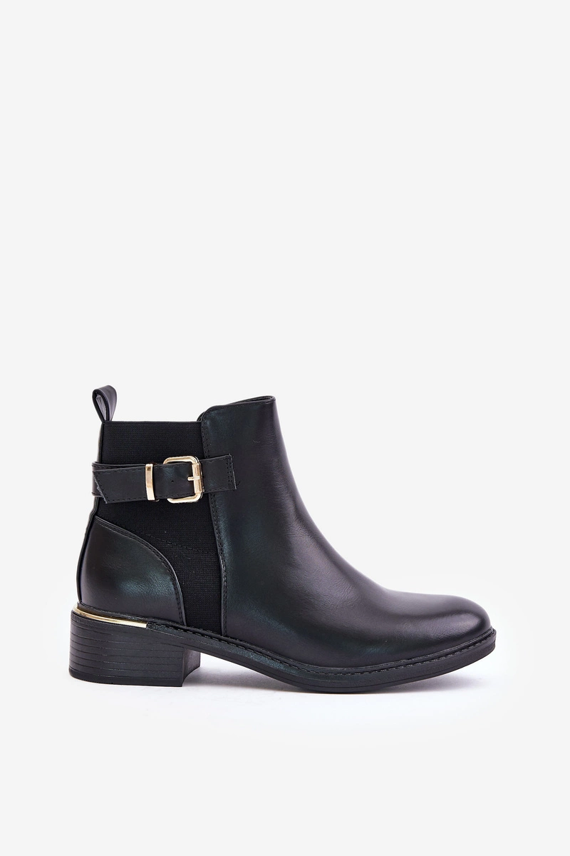 Botki Sztyblety Damskie Na Niskim Obcasie Ocieplane Ze Złotą Klamrą Czarne Inomira