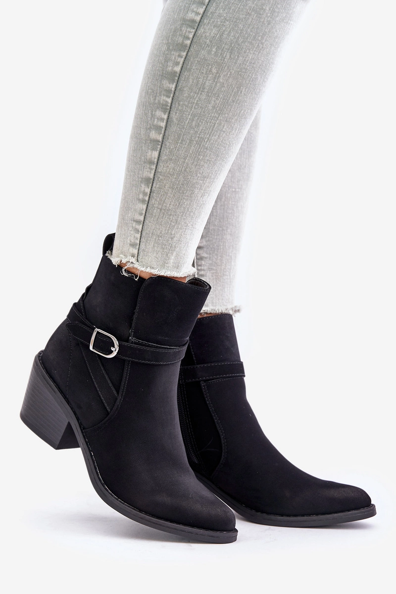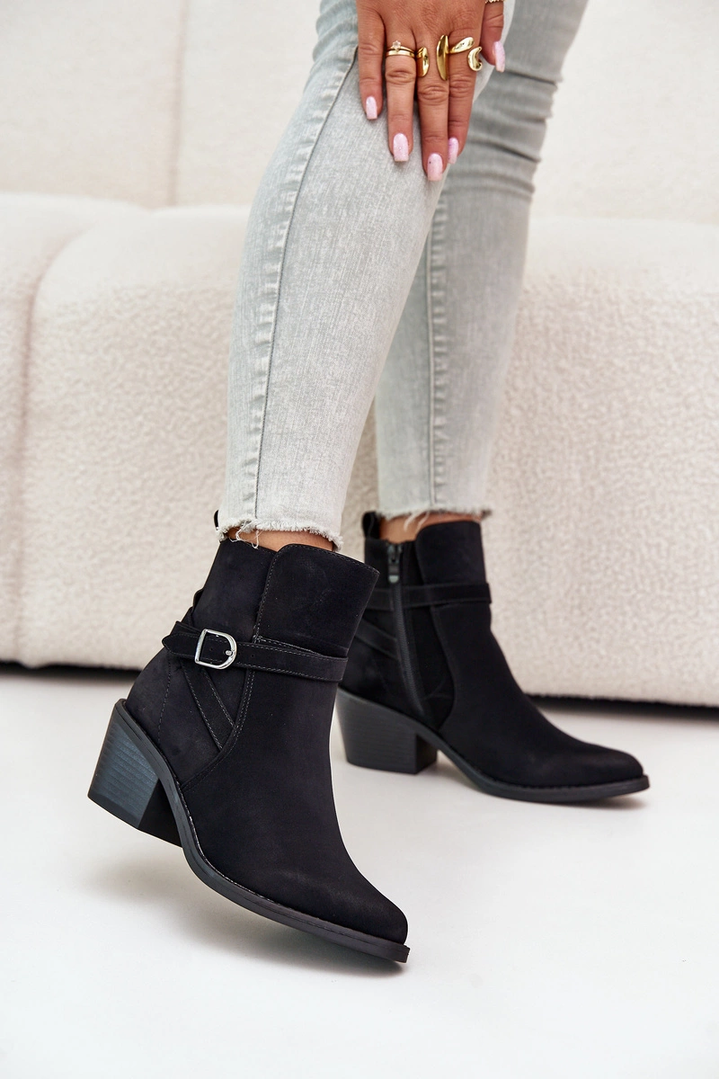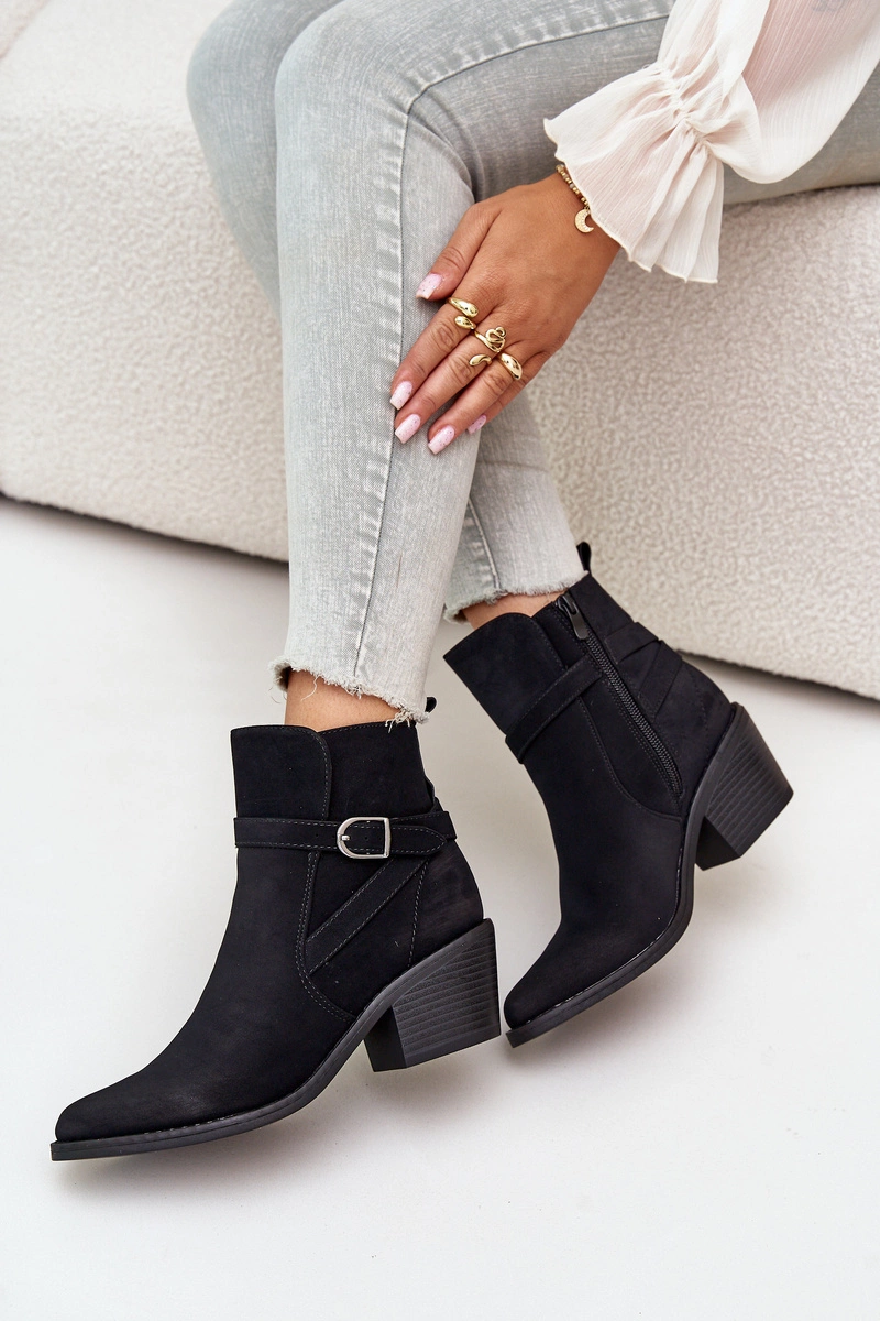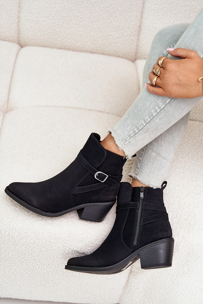 Botki Kowbojki Na Obcasie Z Noskami W Szpic Ocieplane Na Zamek Czarne Glamer