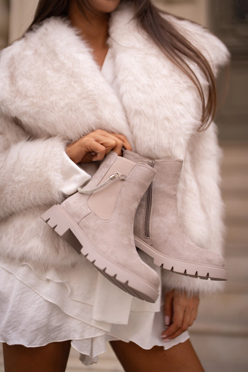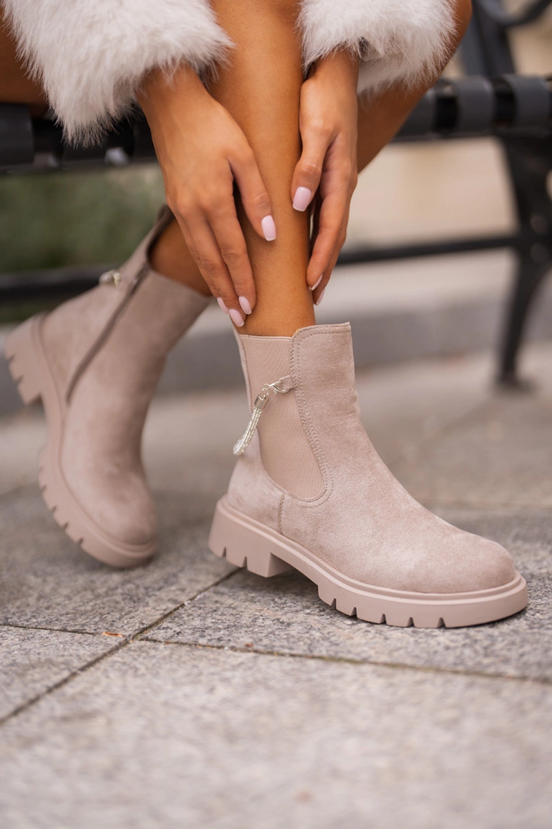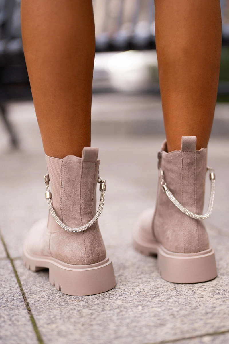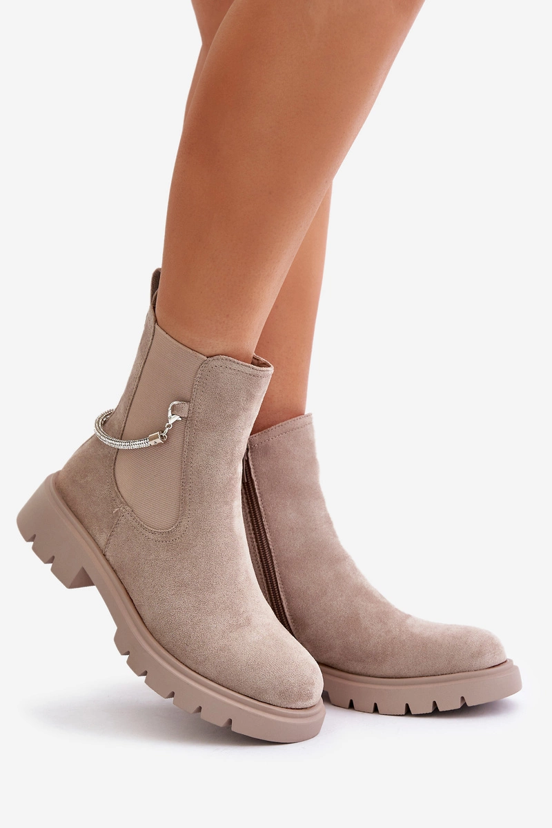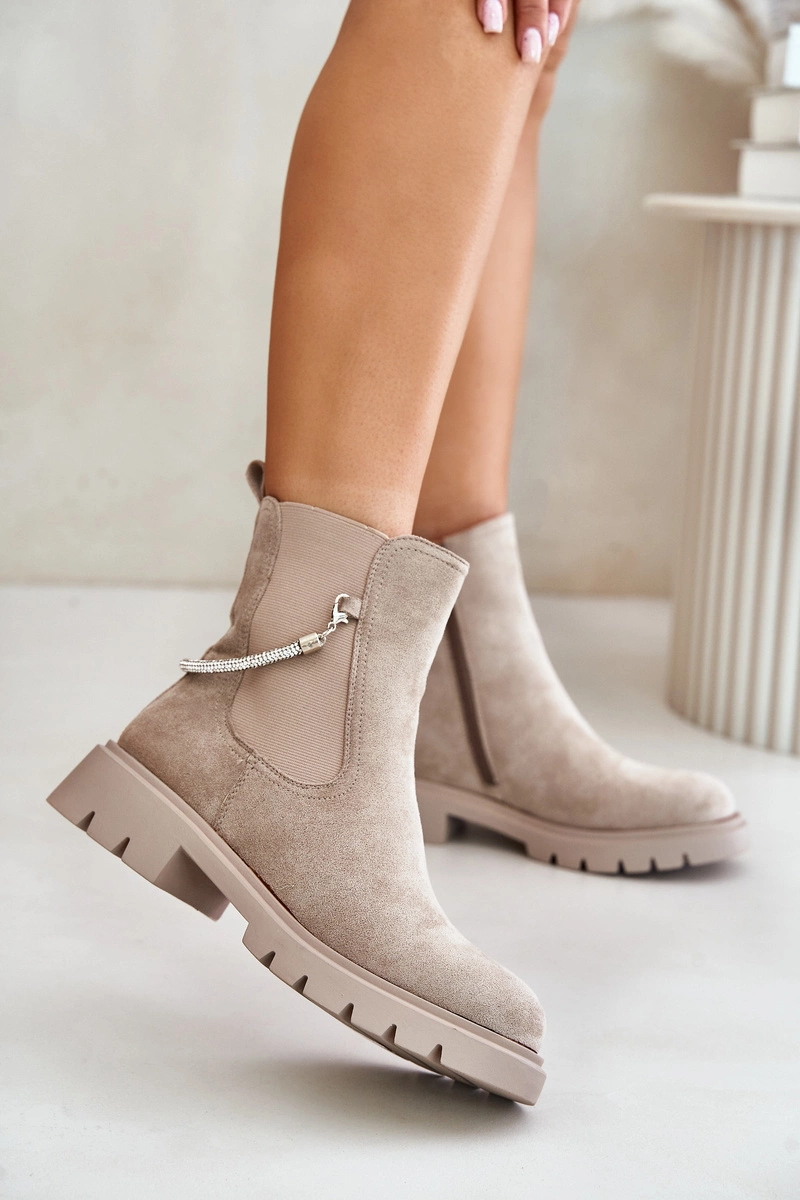 Ocieplane Botki Sztyblety Na Zamek Z Ozdobnym Paskiem Beżowe Labenne