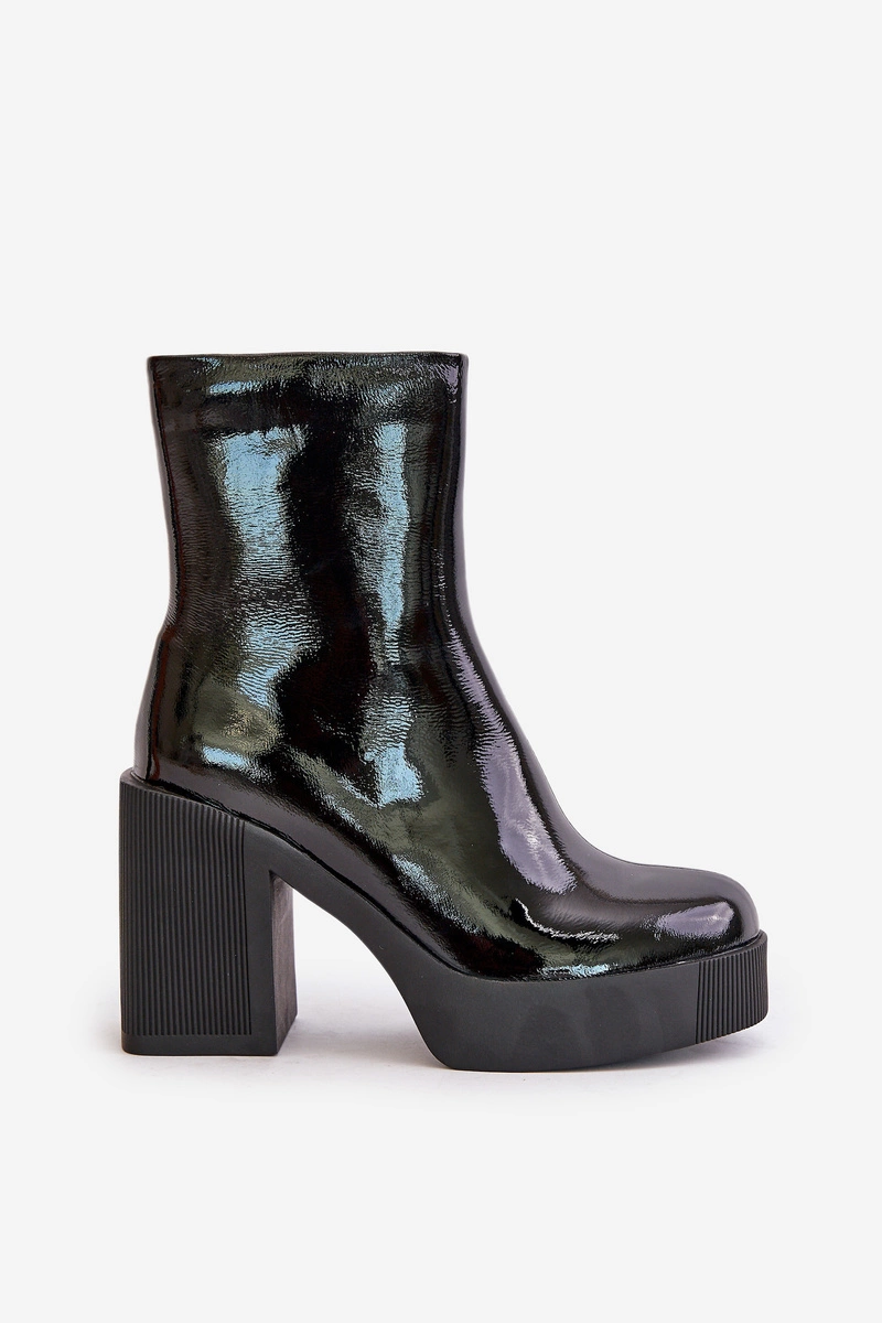 Skórzane Lakierowane Botki Damskie Na Masywnym Słupku Ocieplane D&A CR42-189 Czarne