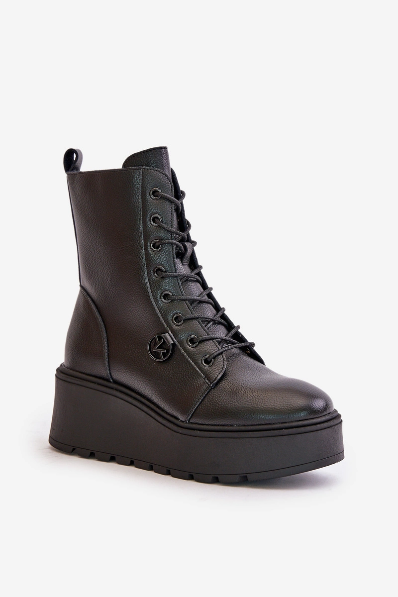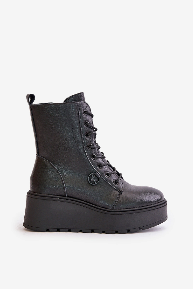 Skórzane Botki Workery Ocieplane Na Platformie I Koturnie Vinceza 58338 Czarne