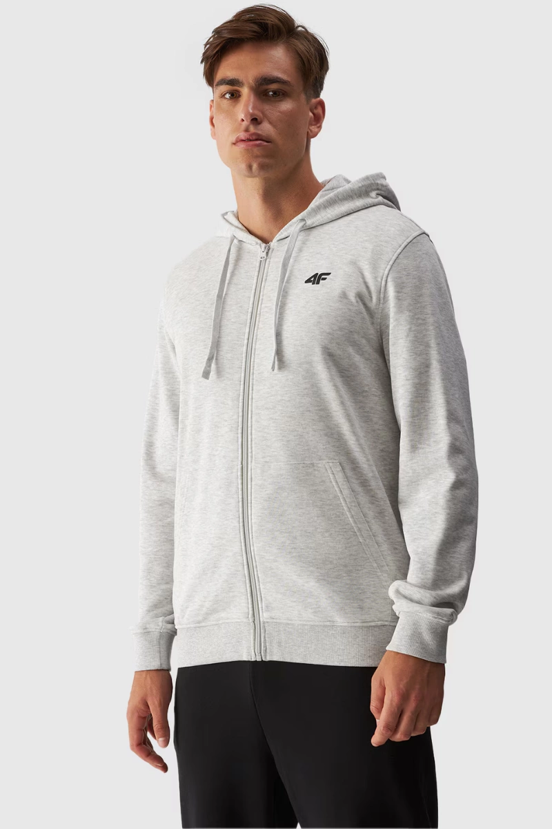 Męska Bluza Dresowa Na Zamek Z Kapturem 4FWMM00TSWSM1466-27M Szara