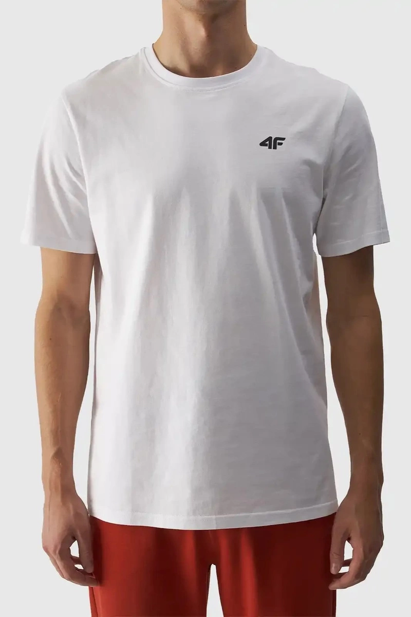 Koszulka Męska Gładka Z Logo 4F 4FWMM00TTSHM1843-10S Biała