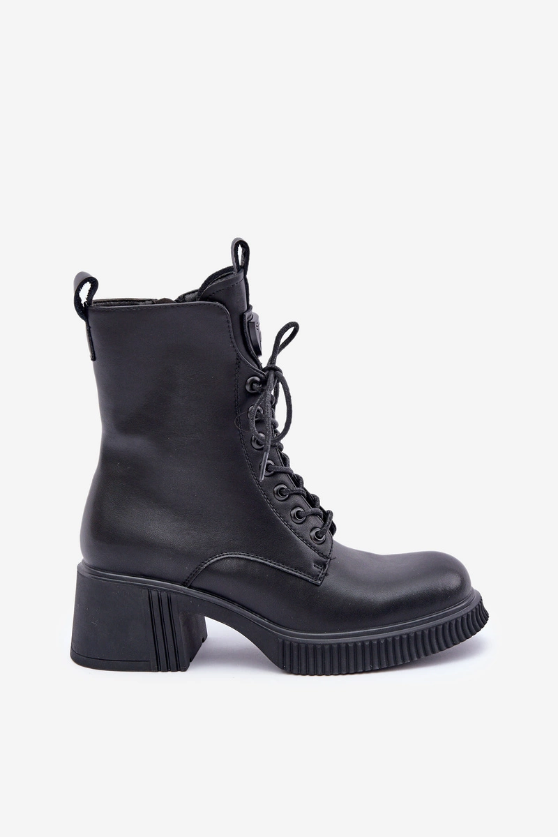 Botki damskie wykonane ze skóry naturalnej. Osadzone na masywnym, stabilnym obcasie. Noski zaokrąglone. Zapinane na zamek oraz dodatkowo posiadają sznurowanie. Środek ocieplony miłym w dotyku kocem obuwniczym. Koniecznie powinnaś je mieć w swojej jesienno-zimowej szafie! Przy wyborze rozmiaru prosimy sugerować się tabelą rozmiarów.