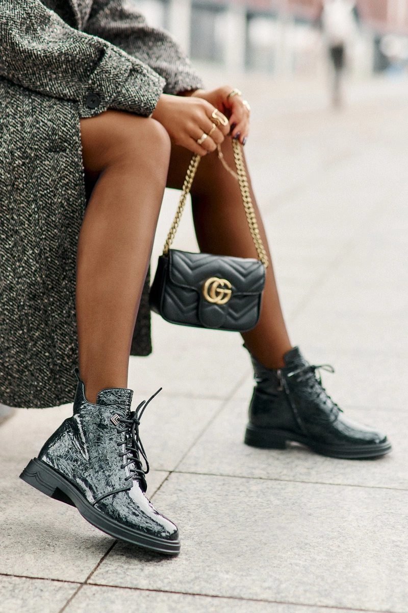 Eleganckie botki wykonane z naturalnej skóry to stylowy wybór na chłodniejsze dni. Osadzone na płaskim obcasie, zapewniają wygodę, a połączenie sznurowania i zamka ułatwia ich zakładanie oraz dopasowanie do stopy. Tłoczenia na cholewce dodają im wyrafinowanego, oryginalnego wyglądu. Ocieplane wnętrze gwarantuje ciepło, dzięki czemu te botki doskonale sprawdzą się zarówno w codziennych, jak i bardziej eleganckich stylizacjach. Przy wyborze rozmiaru prosimy sugerować się tabelą rozmiarów.