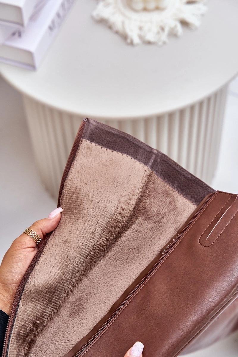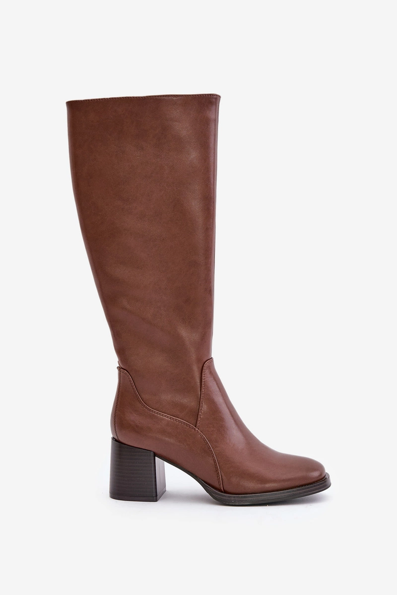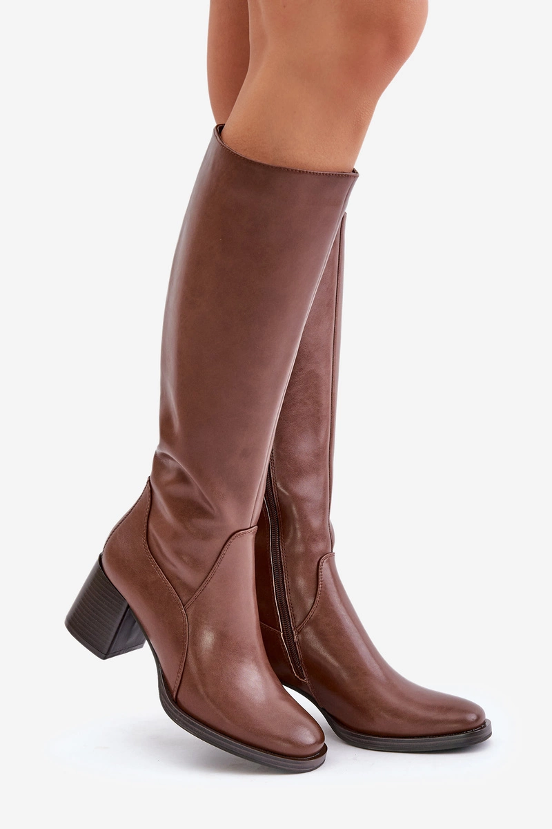 Skórzane Kozaki Na Słupku Przed Kolano Ocieplane Sergio Leone KZ231-S Brązowe