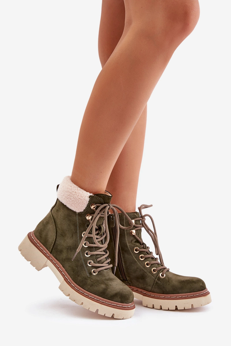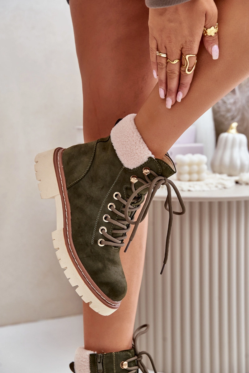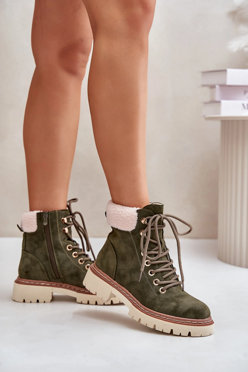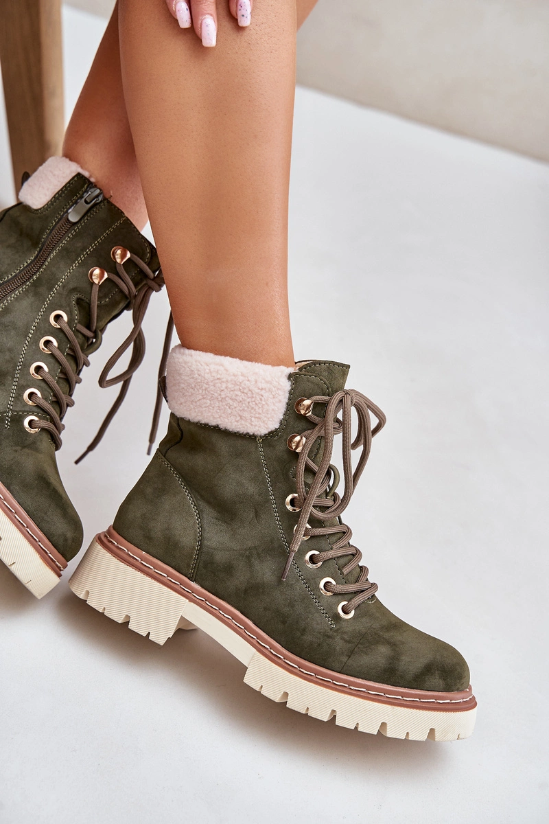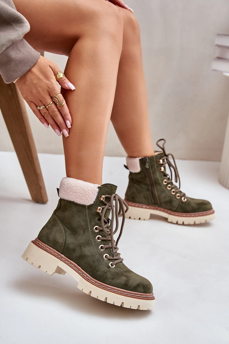 Ocieplane Trapery Botki Damskie Na Zamek Zielone Ferelia