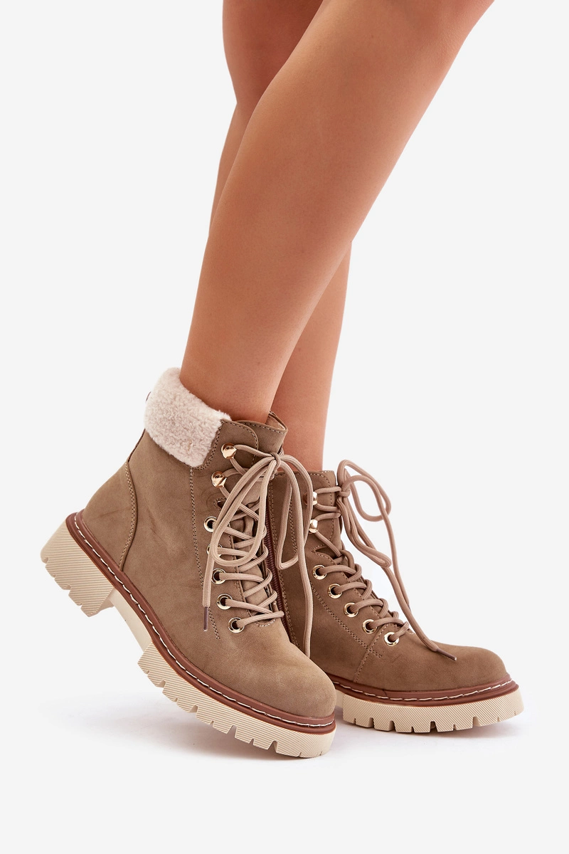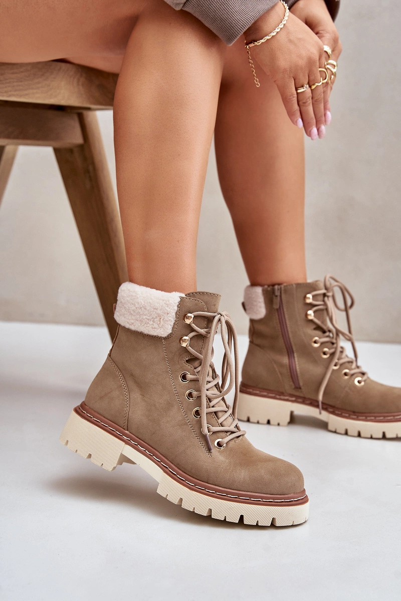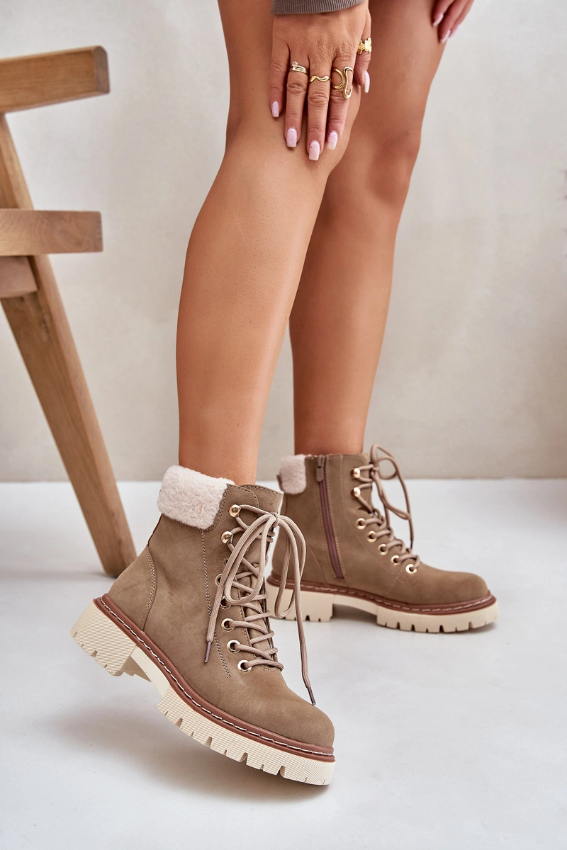 Ocieplane Trapery Botki Damskie Na Zamek Khaki Ferelia