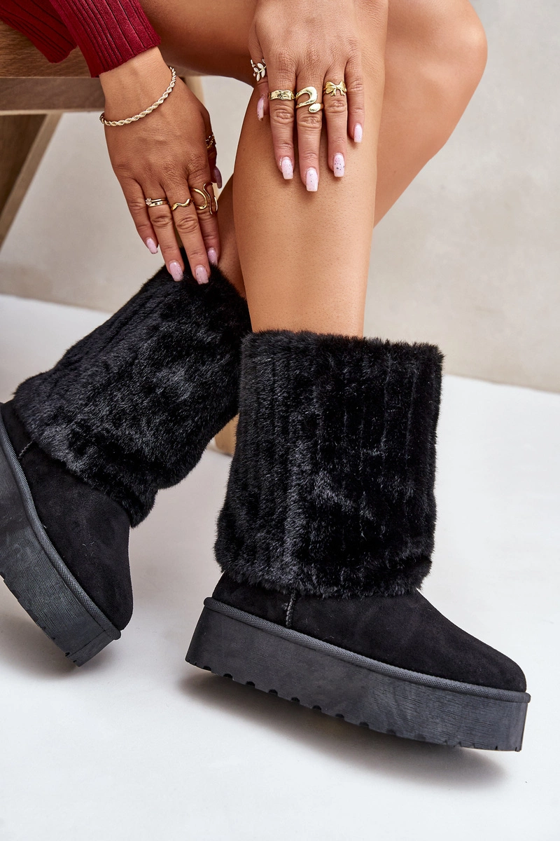 Śniegowce Na Platformie Z Wywiniętą Cholewką Czarne Lisonea