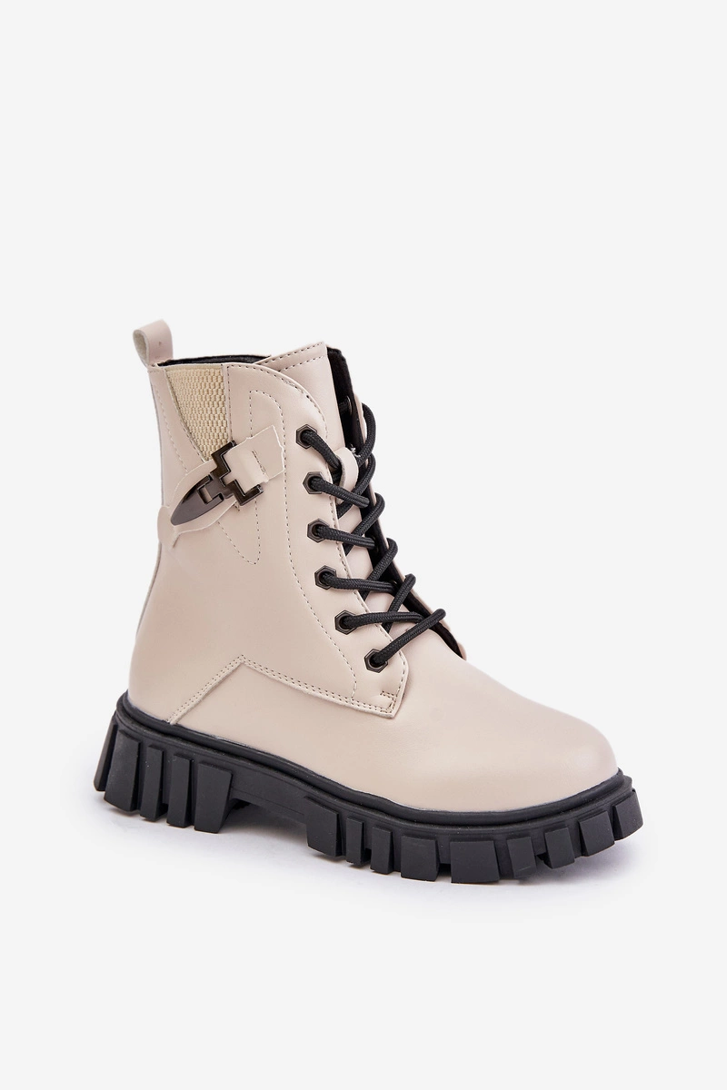 Ocieplane Botki Dziewczęce Na Zamek Z Ozdobą Beżowe Zinnirella