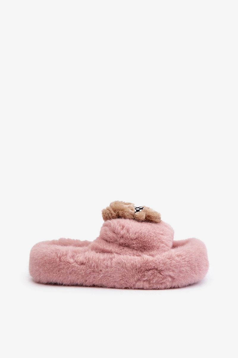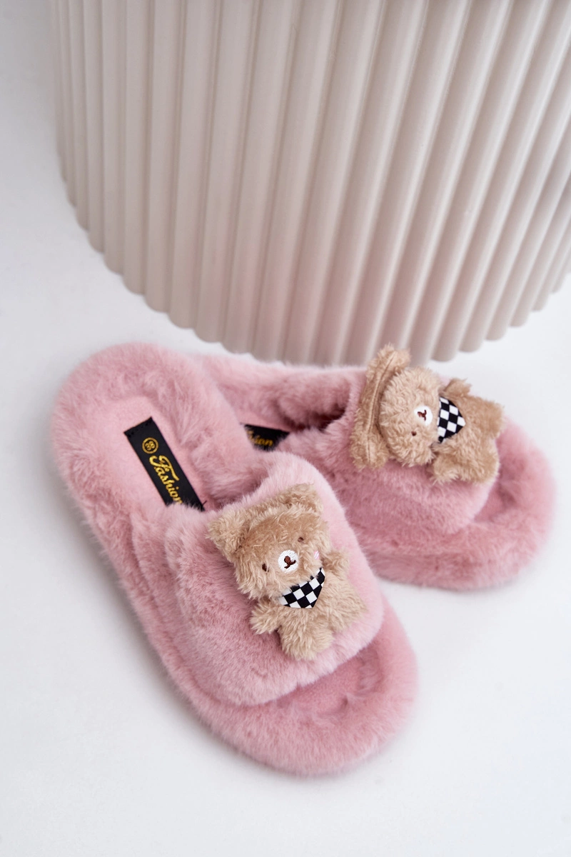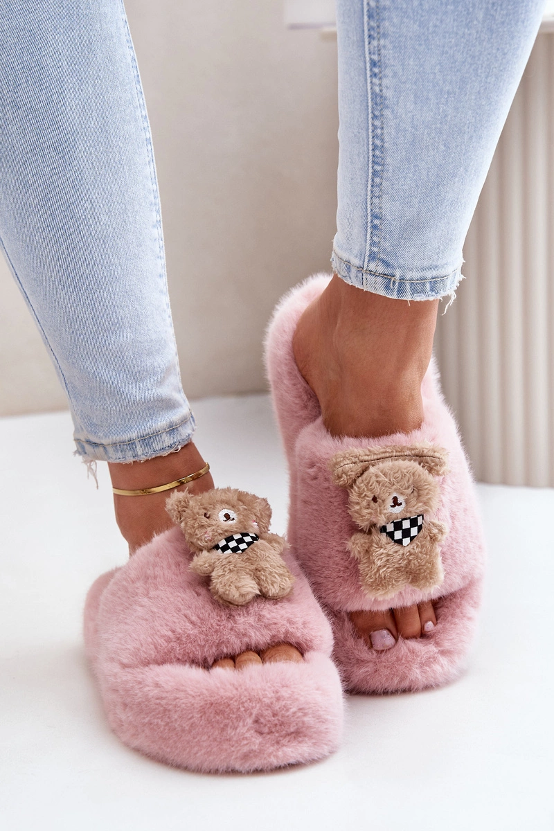 Futrzane Kapcie Damskie Z Misiem Różowe Romania