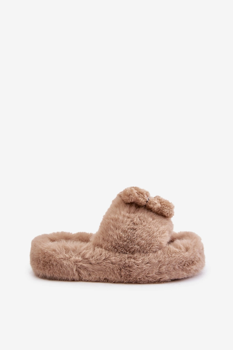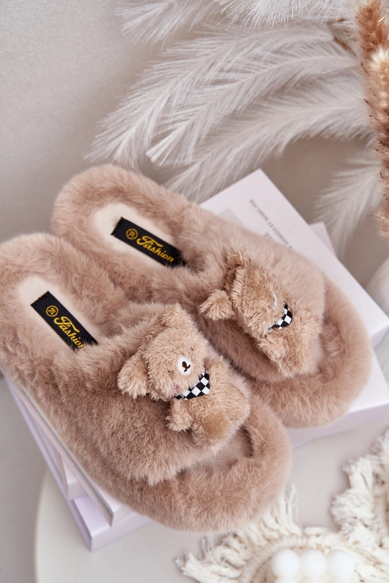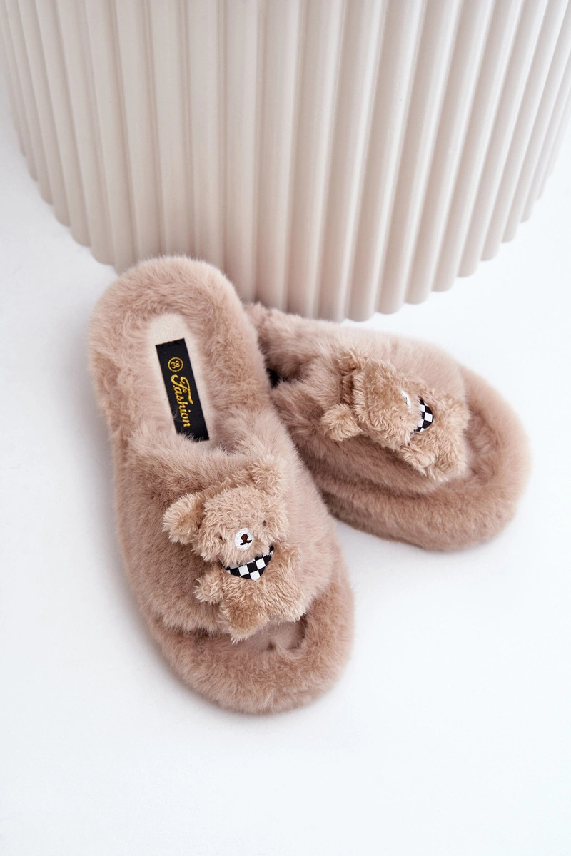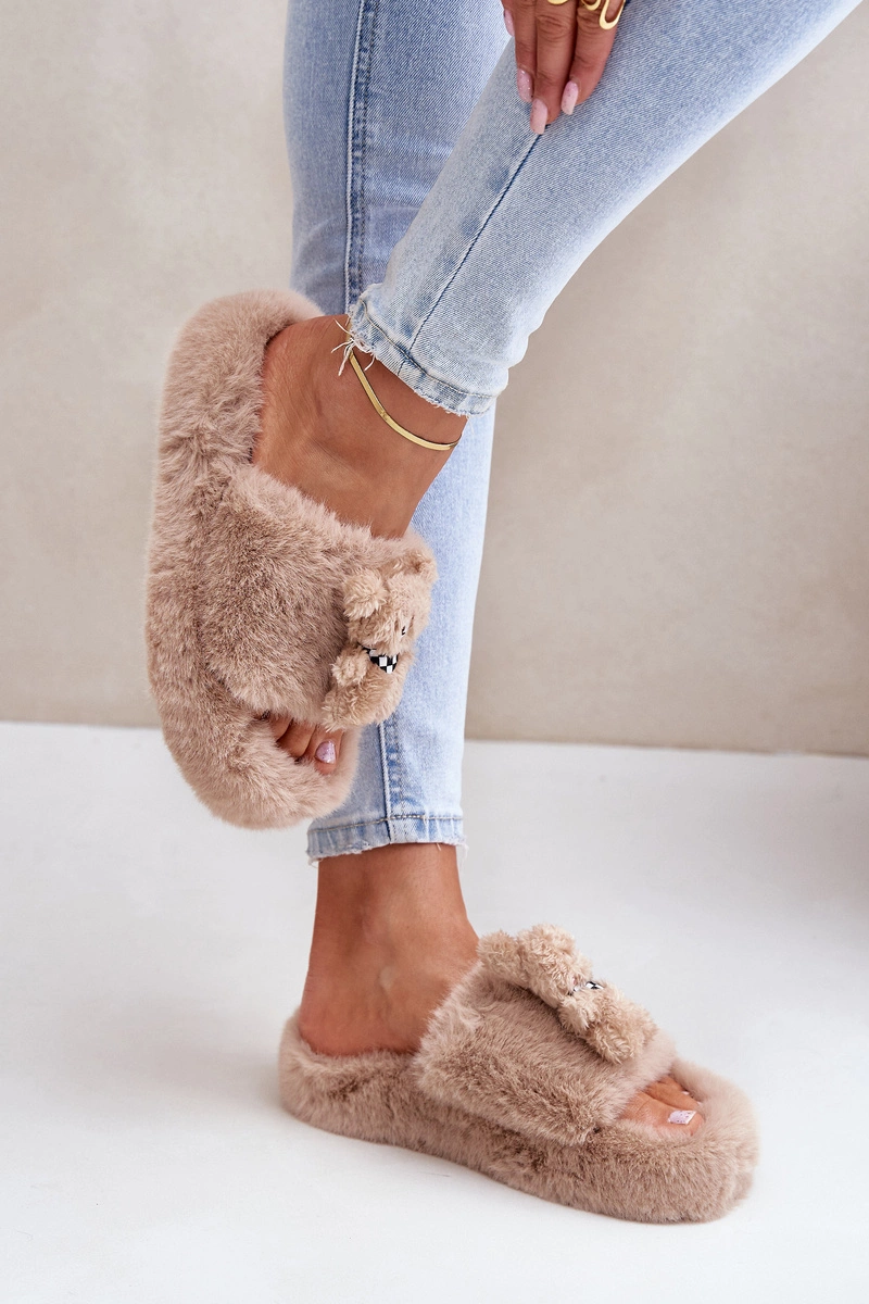 Futrzane Kapcie Damskie Z Misiem Beżowe Romania